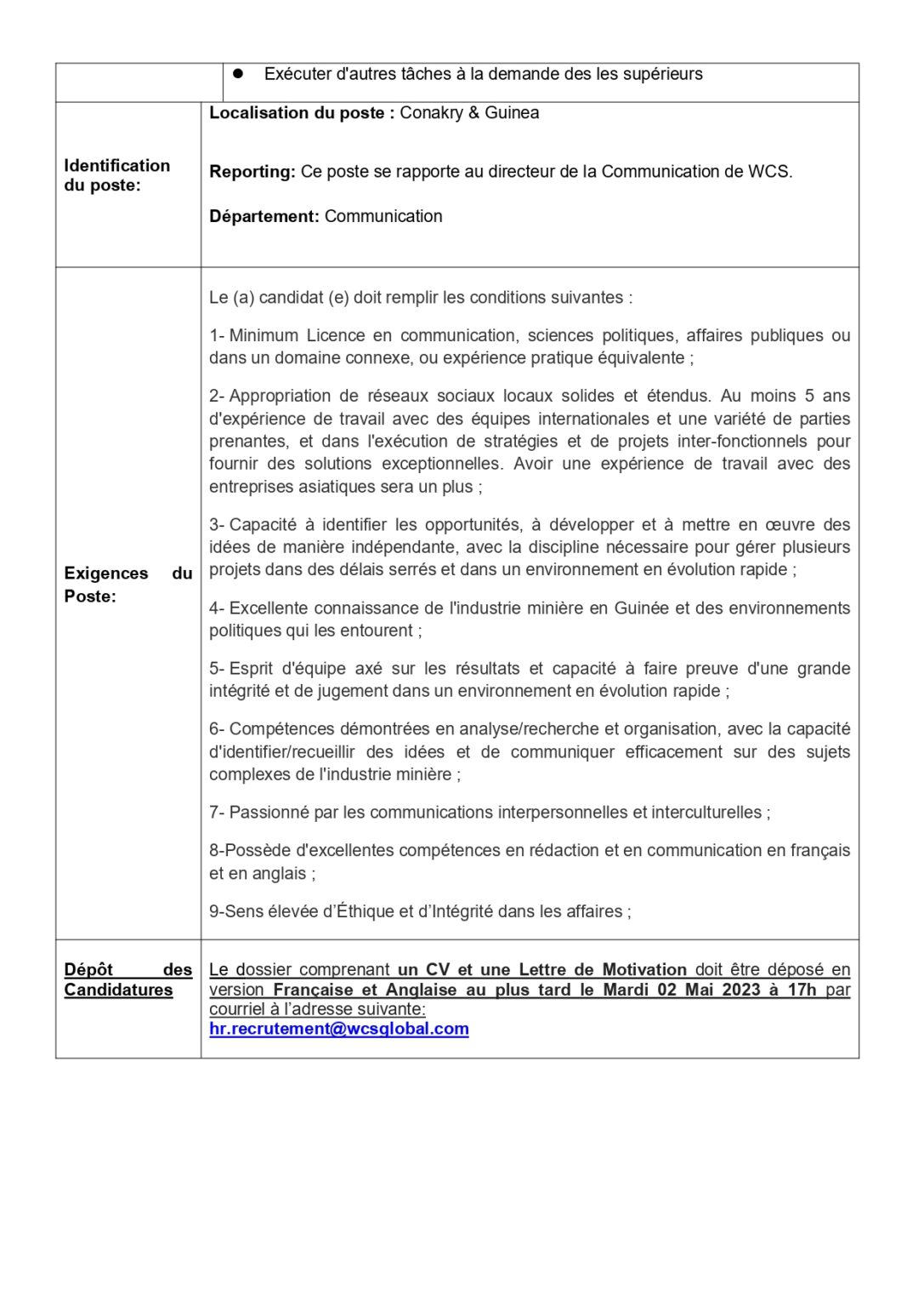 Offre d’emploi : Winning Consortium Simandou recrute Manager des relations publiques Offres d'emploi By alphaleserum@gmail.com On Avr 29, 2023 Share Share