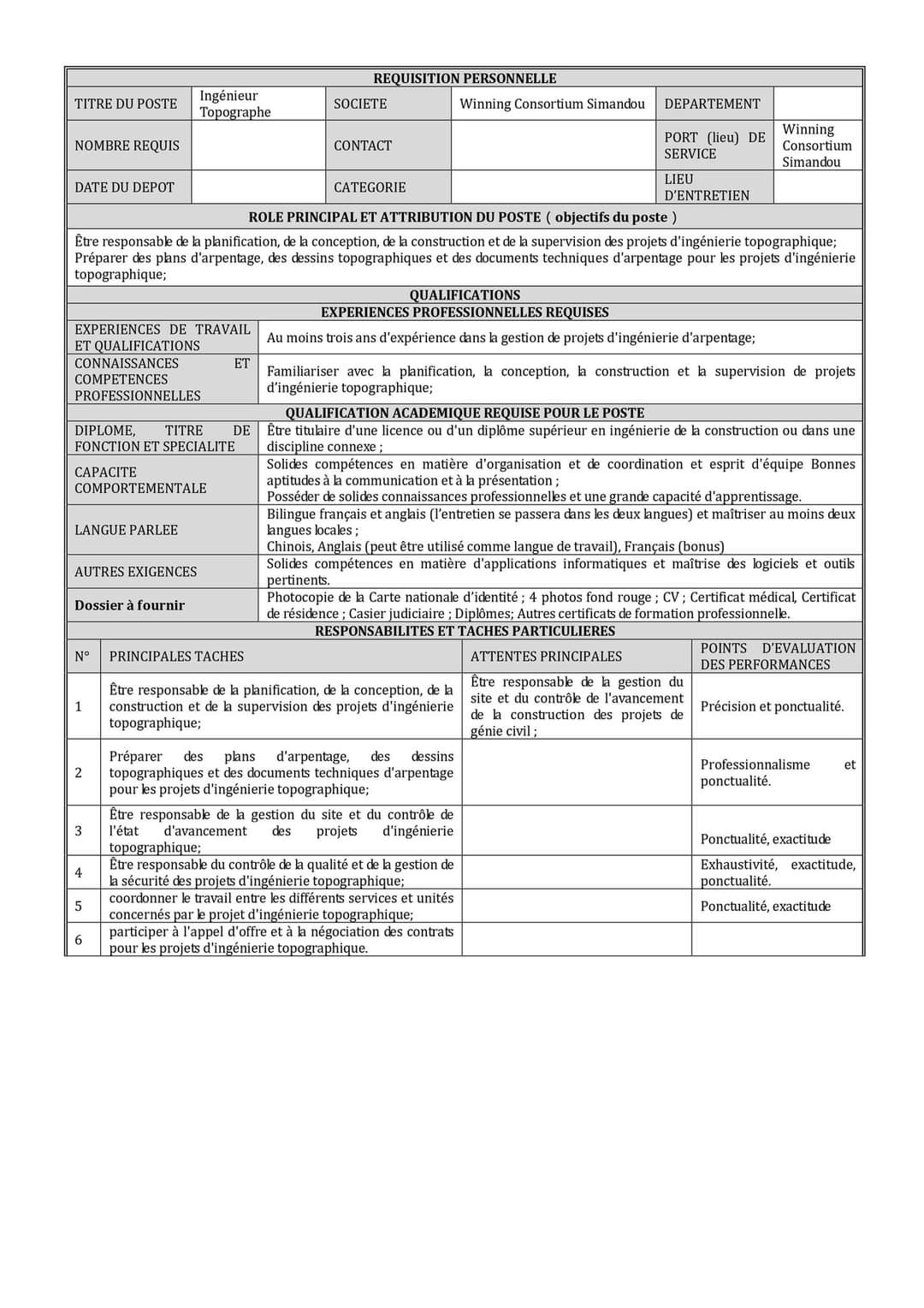 Offre d’emploi : la société minière Winning Consortium Simandou recrute un Ingénieur topographe Offres d'emploi By alphaleserum@gmail.com Last updated Mai 19, 2023 Share Share