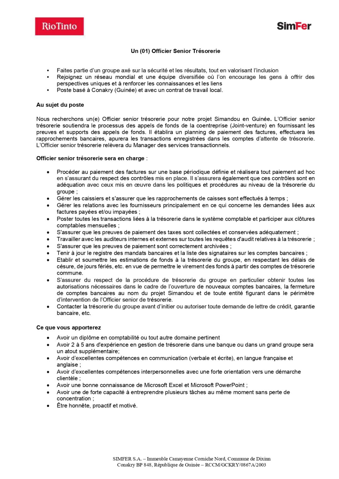 Posez votre candidature dès aujourd’hui : CV + lettre de motivation dans les boites aux lettres de Simfer à Beyla ou en cliquant sur le lien suivant :