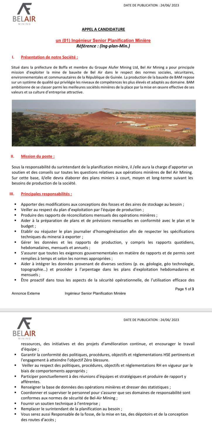 Pour les détails de l’annonce, veuillez lire ci-dessous :