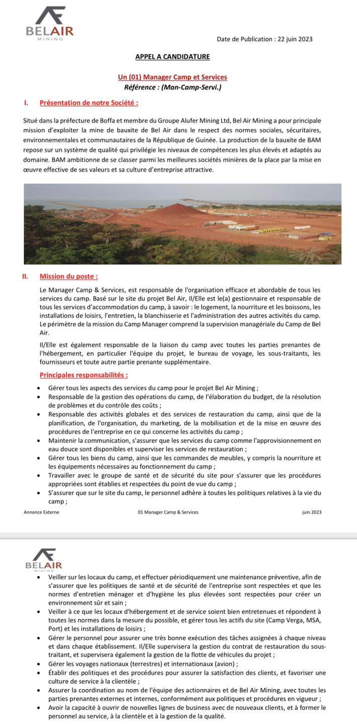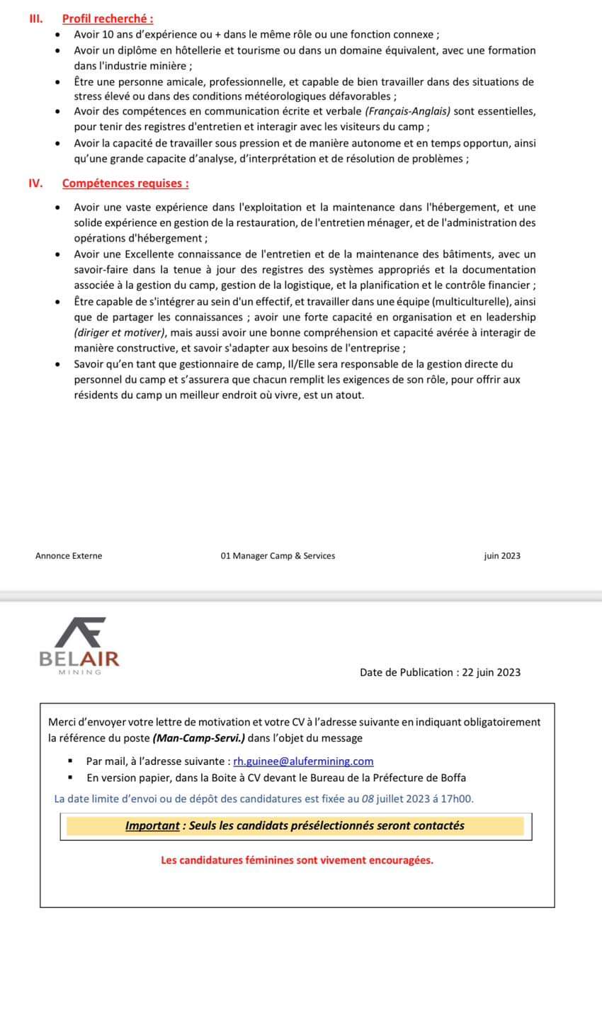 Pour les détails de l’annonce, veuillez lire ci-dessous :