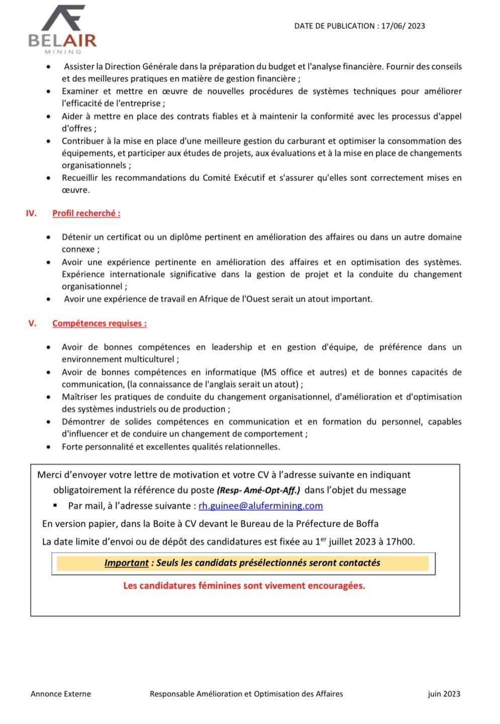 Pour les détails de l’annonce, veuillez lire ci-dessous :