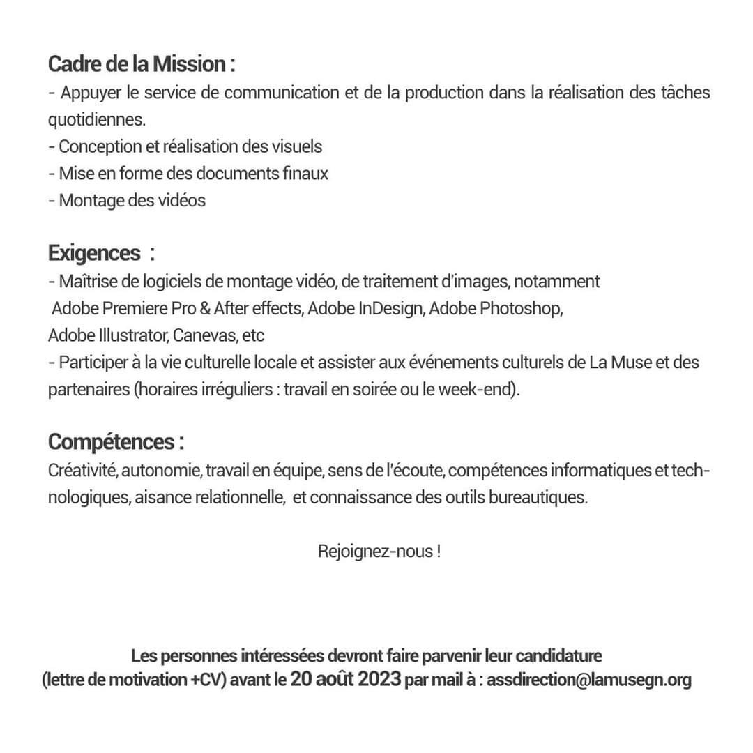 📧 Envoyez votre CV et lettre de motivation à l’adresse suivante : assdirection@lamusegn.org