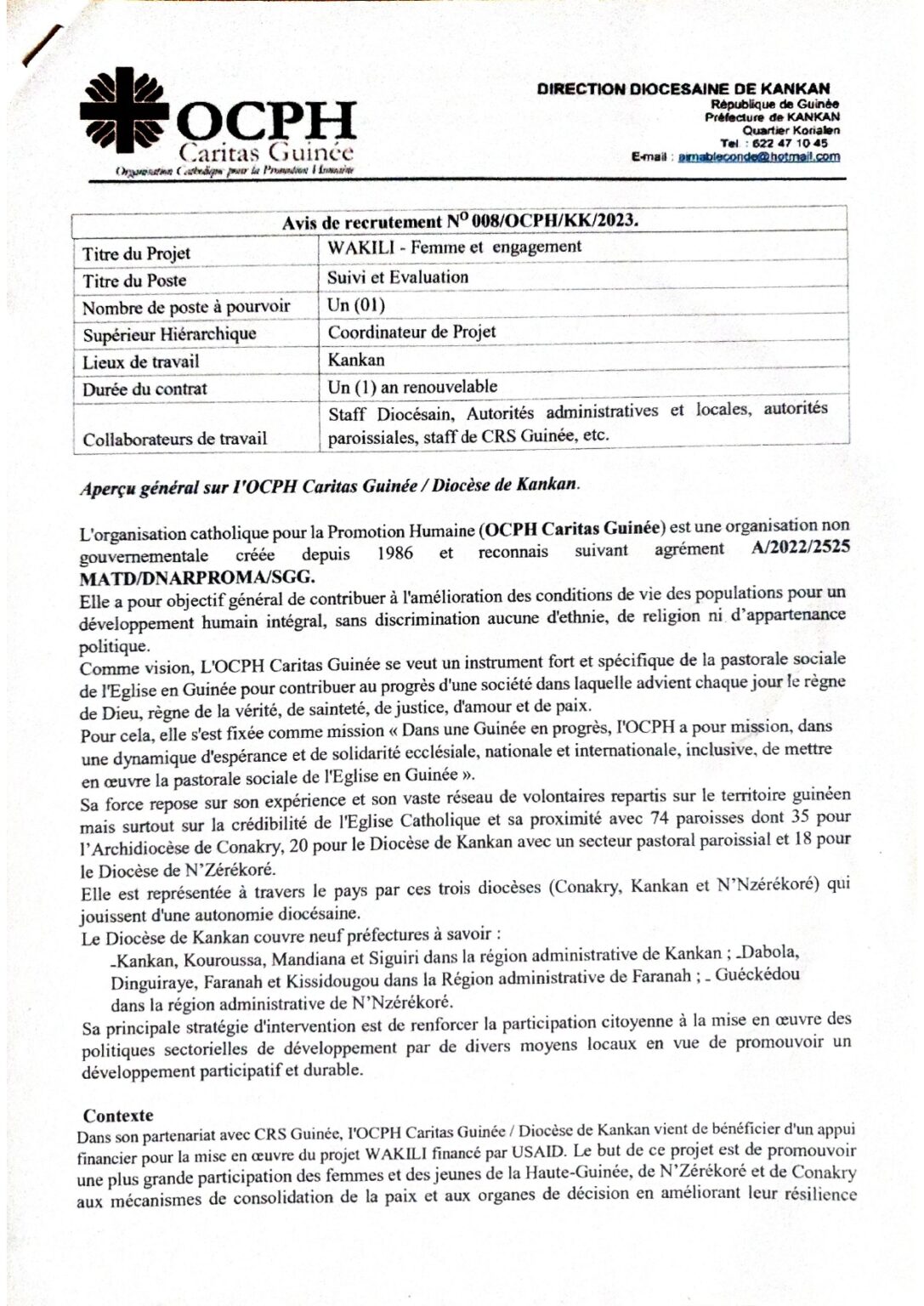 Ocph caritas guinéeocph caritas guinée recruterecrutement à ocph caritas guinée