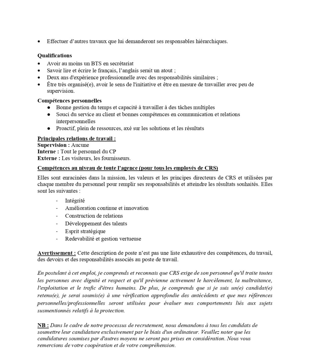 • Offre d’emploi : CRS recherche un(e) Réceptionniste