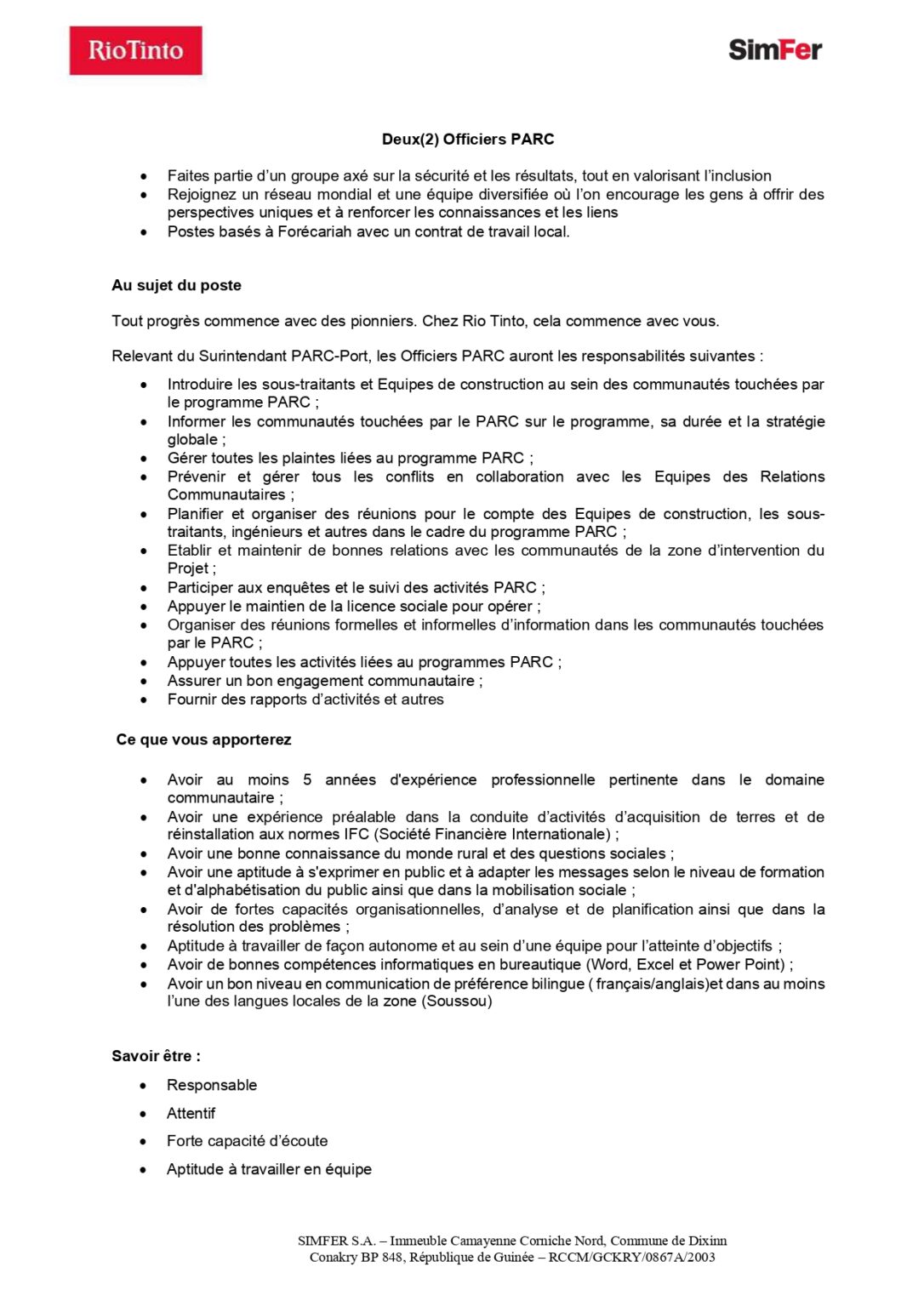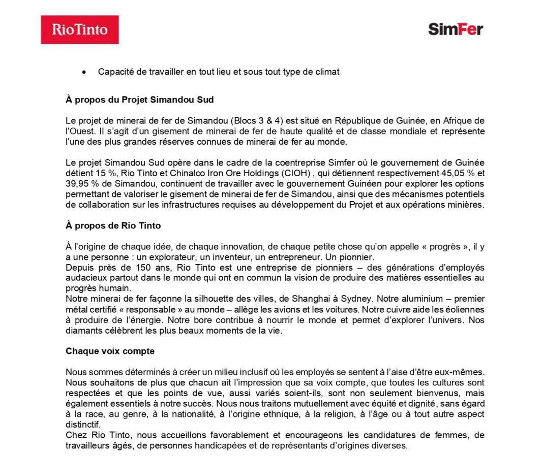 Posez votre candidature dès aujourd’hui : CV + lettre de motivation dans les boites aux lettres de Simfer à Beyla ou en suivant le lien ci-dessous