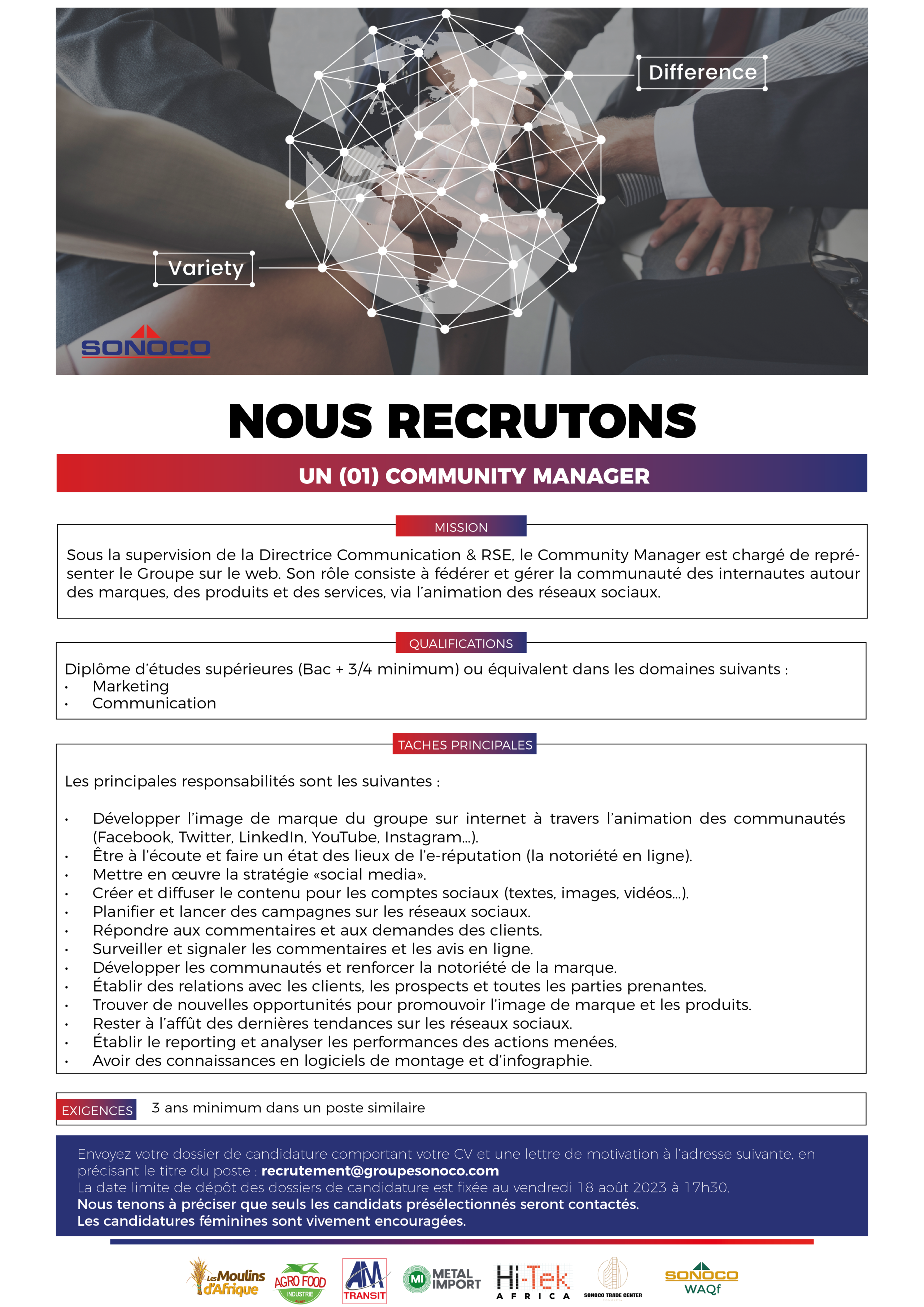 Nous avons de bonnes nouvelles pour vous ! Le Groupe Sonoco recrute activement un Community Manager