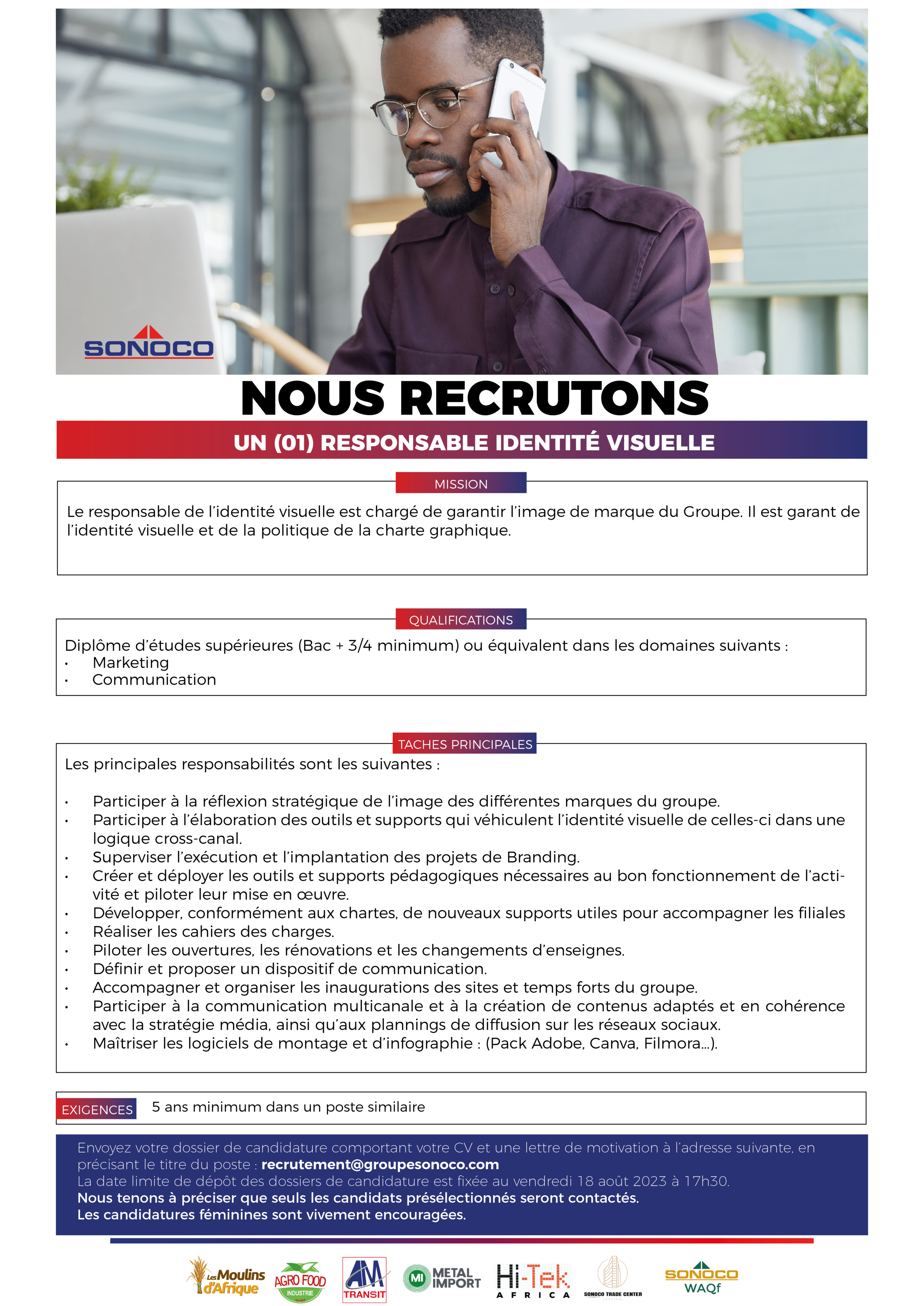 Nous avons de bonnes nouvelles pour vous ! Le Groupe Sonoco recrute activement un Responsable Identité Visuelle