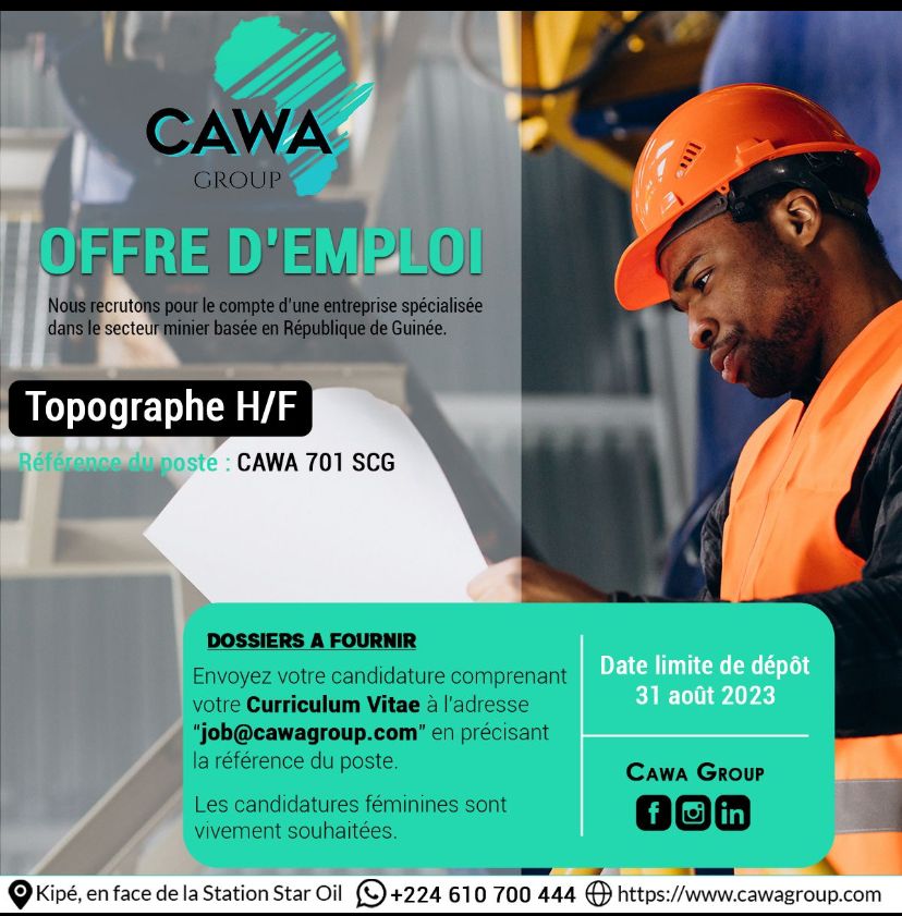 CAWA Guinée recrute pour le compte d’une entreprise spécialisée dans le secteur minier basée en République de Guinée.