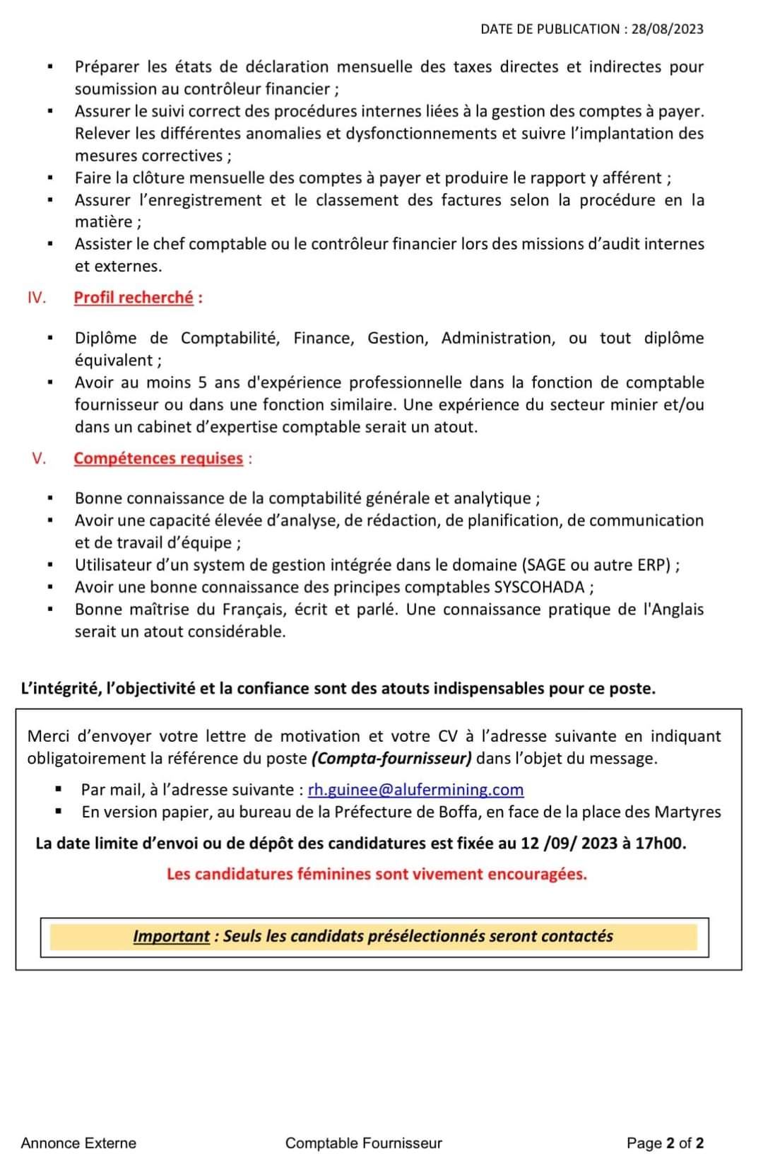 Pour les détails de l’annonce, veuillez lire ci-dessous :