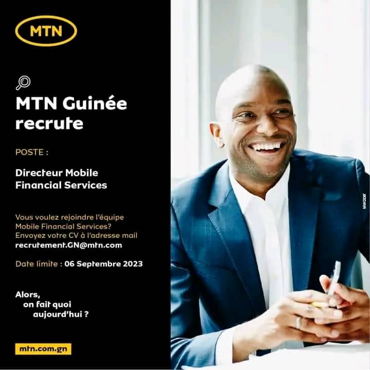 Vous êtes à la recherche de nouveaux challenges? Nus avons l’honneur de vous informer que MTN Guinée recrute : DIRECTEUR MOBILE FINANCIAL SERVICES