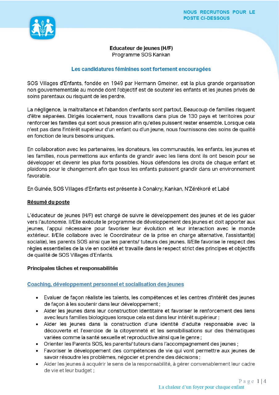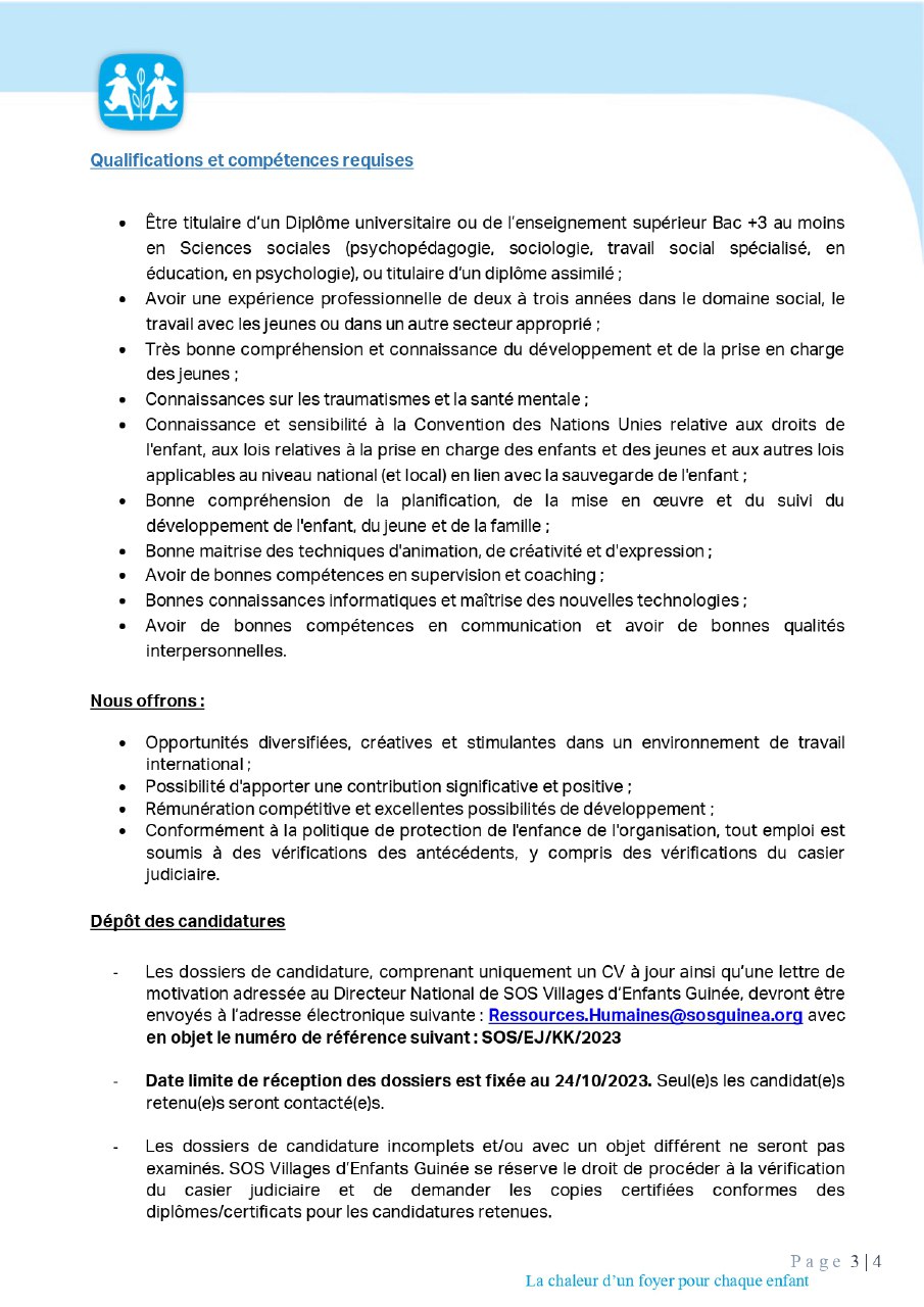 Offre d’emploi : SOS Village d’Enfants recherche un Éducateur de Jeune (H/F) Offres d'emploi By alphaleserum@gmail.com Last updated Oct 9, 2023 Share Share