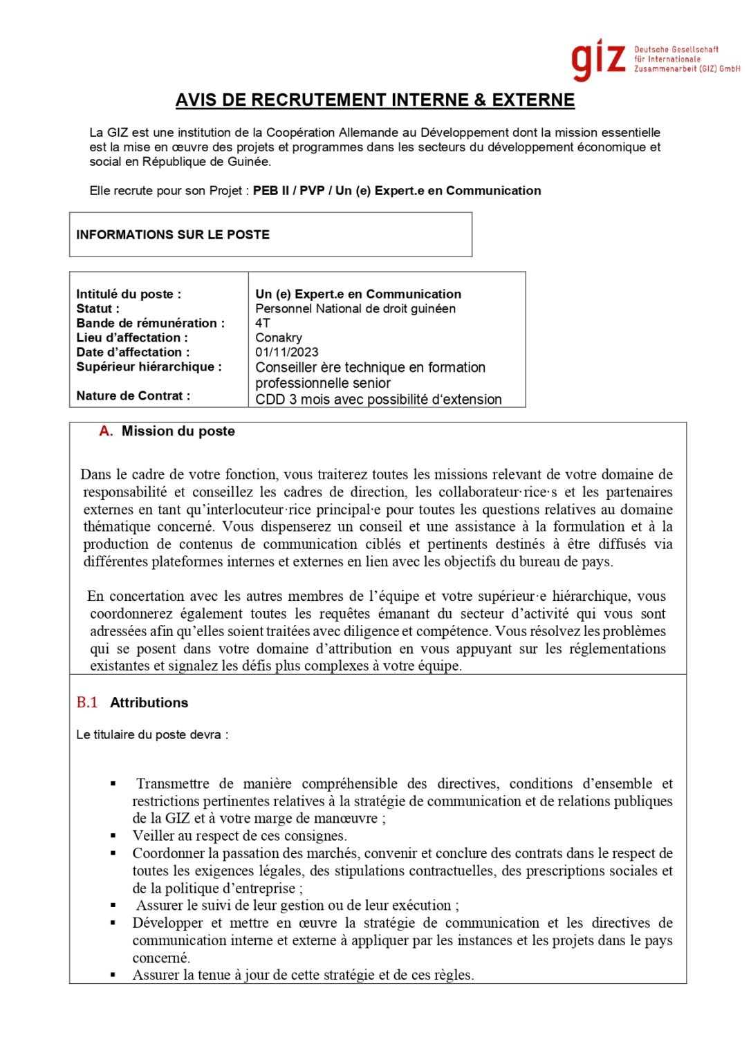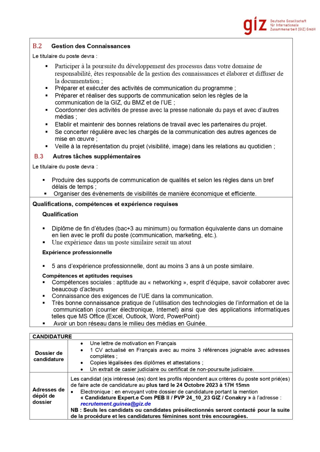 Offre d’emploi : GIZ recrute un (e) Expert.e en Communication Offres d'emploi By alphaleserum@gmail.com Last updated Oct 12, 2023 Share Share