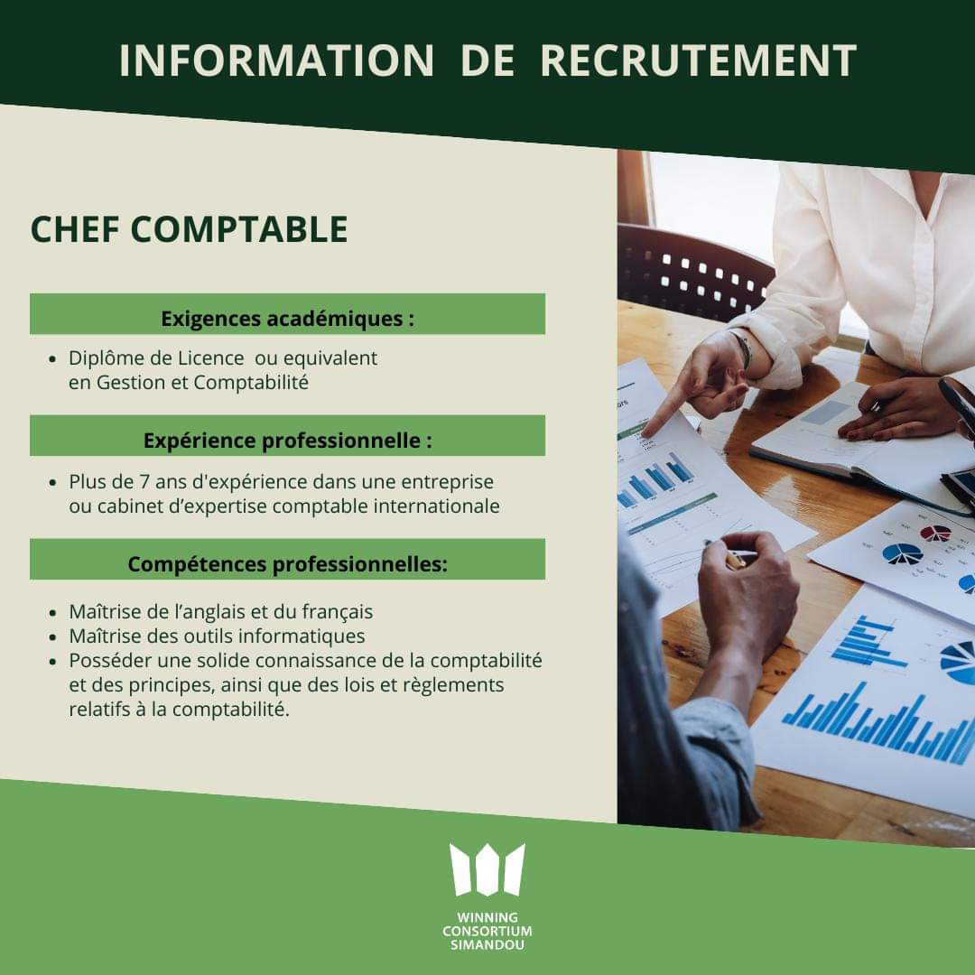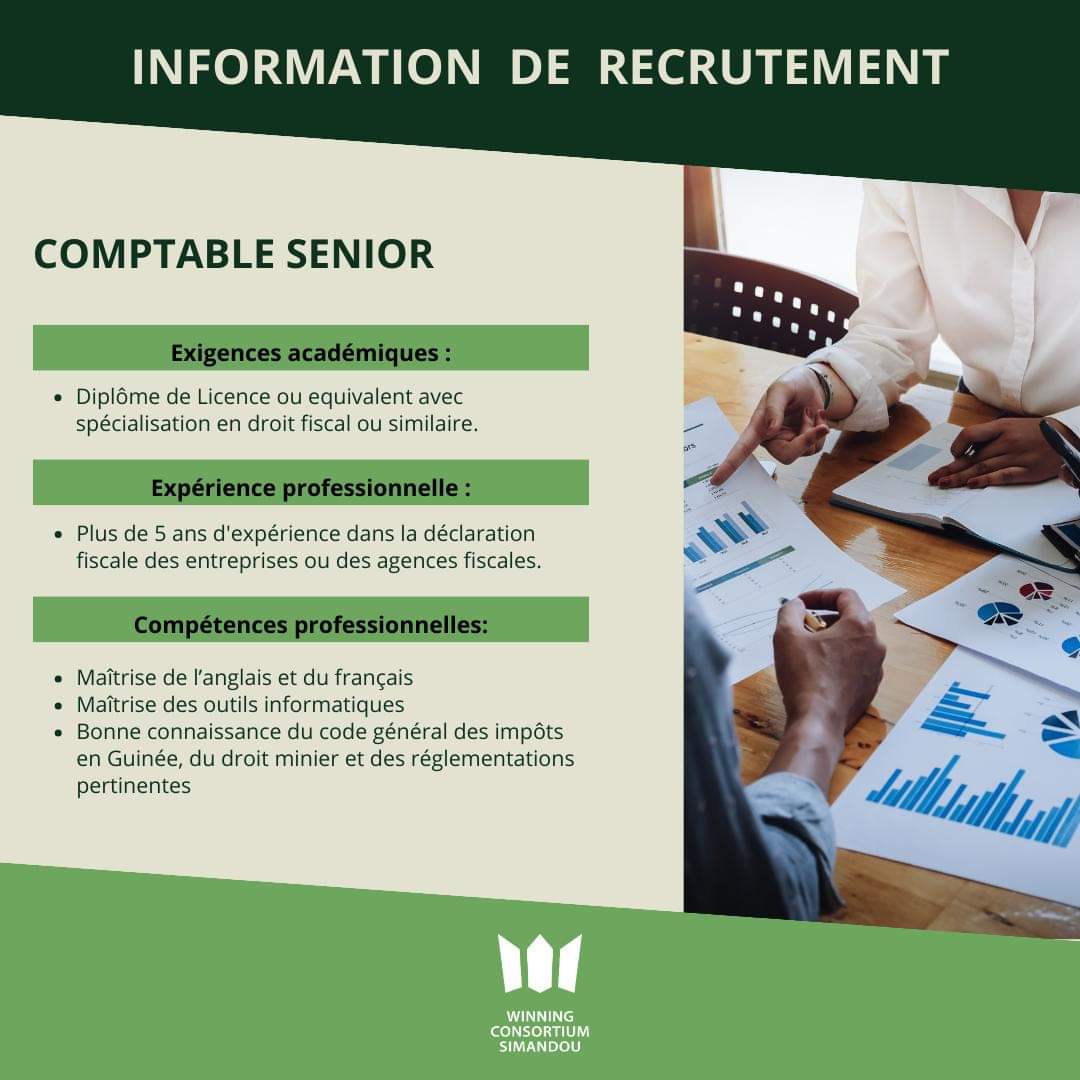 Offre d’emploi : Winning Consortium Simandou recrute 1 Chef comptable et 1 Comptable Senior Offres d'emploi By alphaleserum@gmail.com Last updated Oct 17, 2023 Share Pour postuler et nous rejoindre, contactez nous ici 👉🏿 hr.recrutement@wcsglobal.com Share