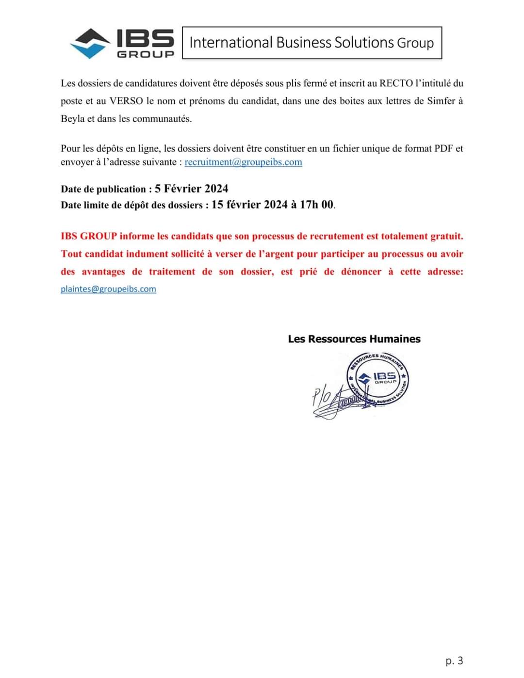 Offre d’emploi : IBS GROUPE recrute pour plusieurs postes Offres d'emploi By alphaleserum@gmail.com Last updated Fév 6, 2024 Share Share