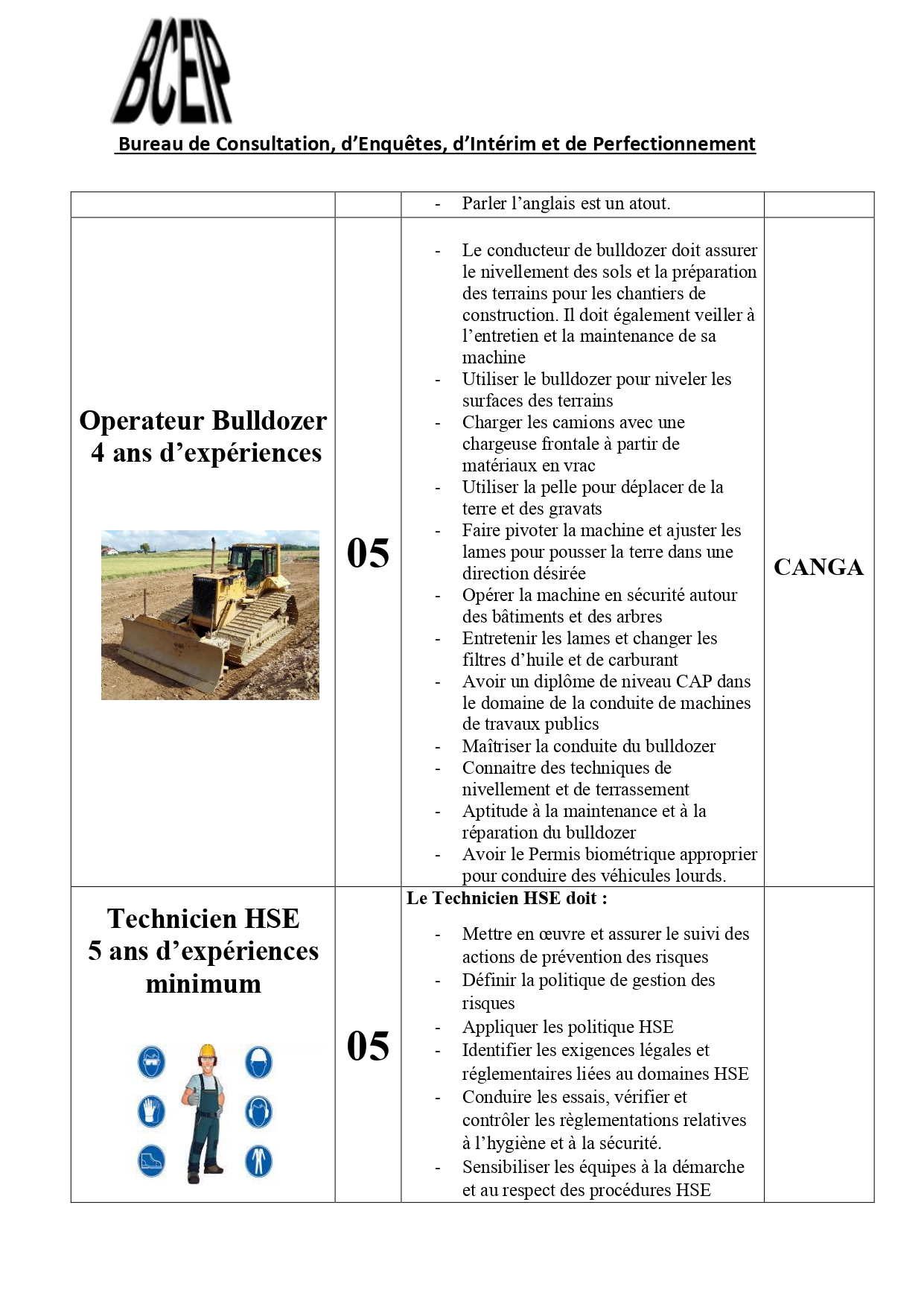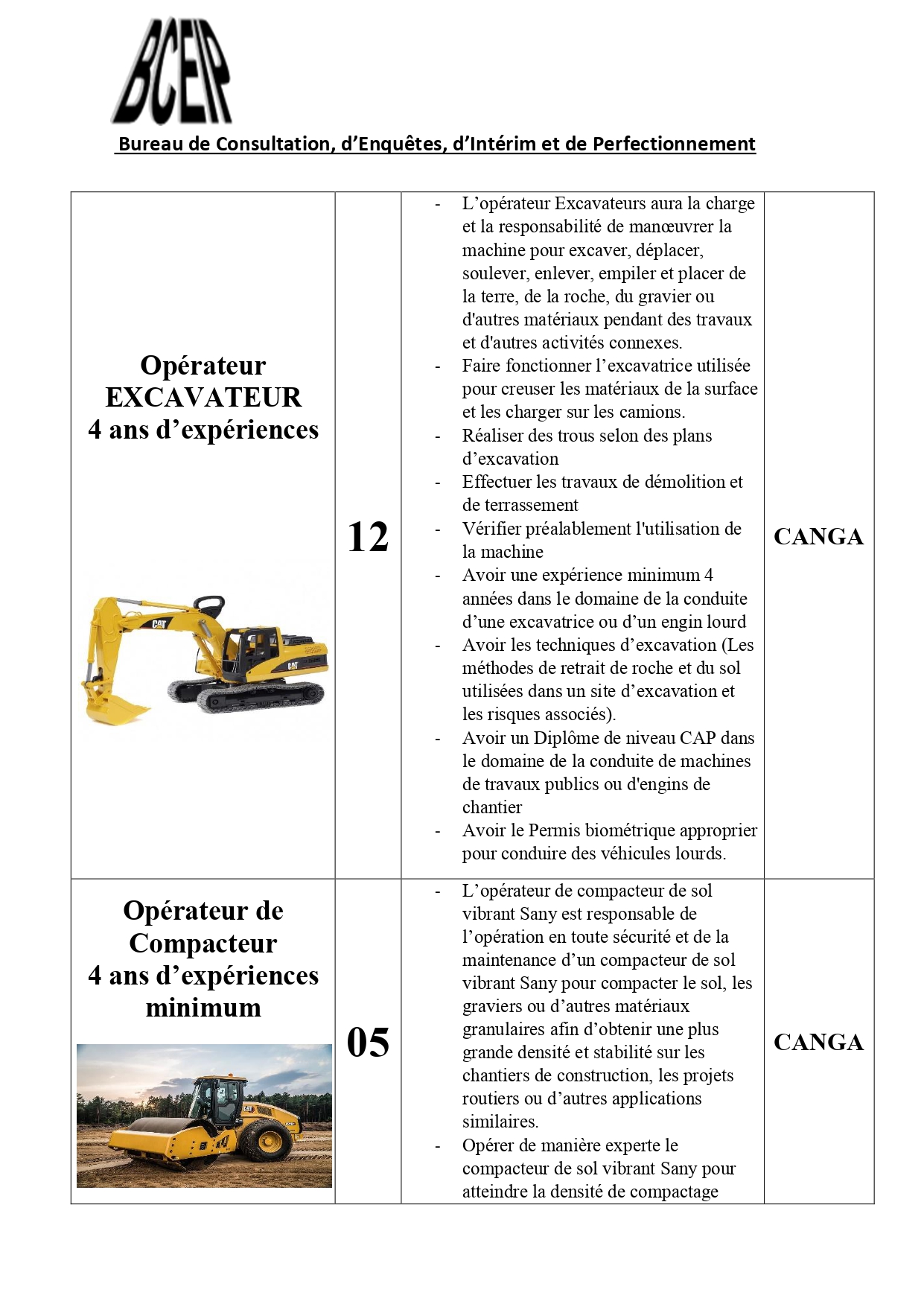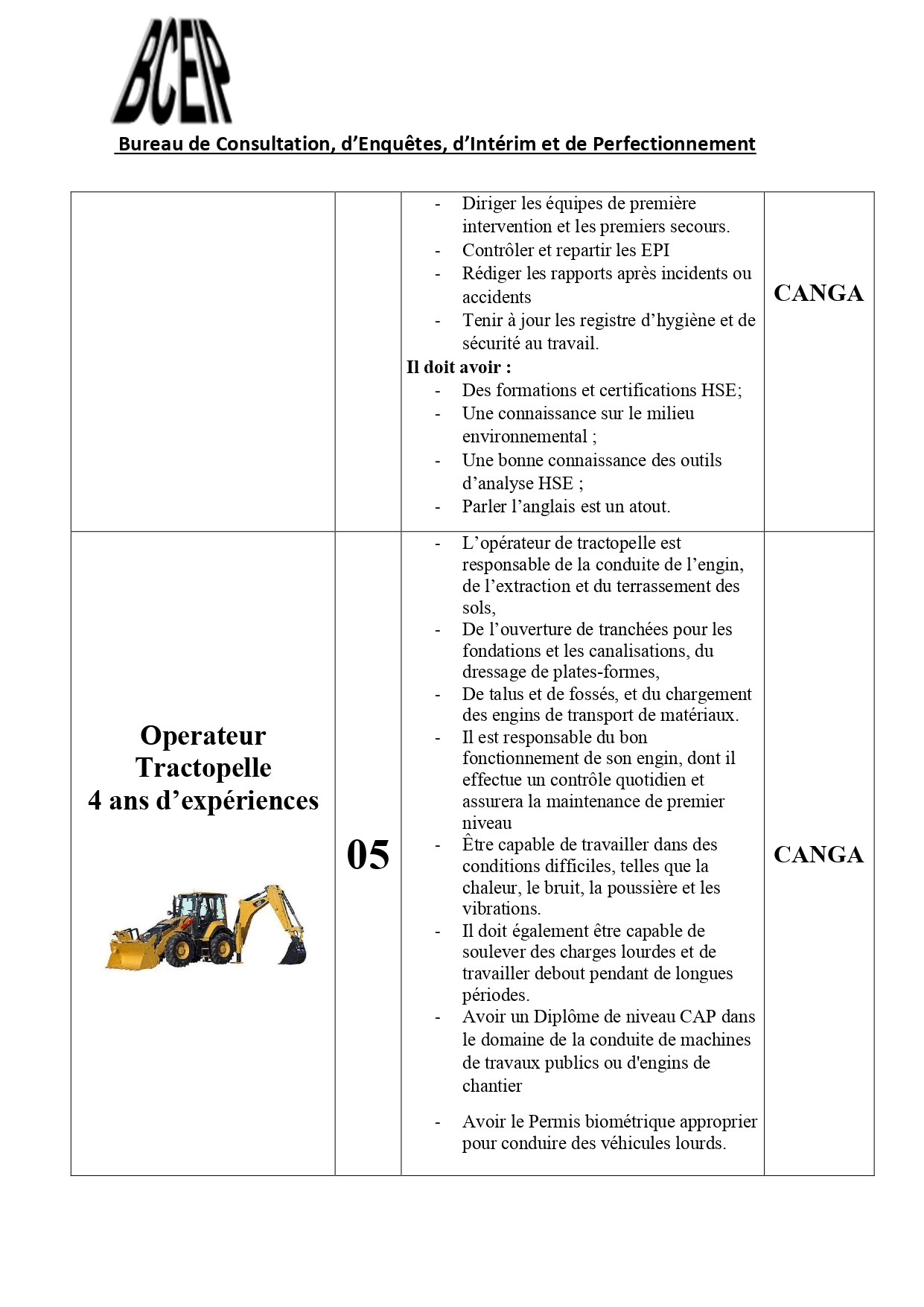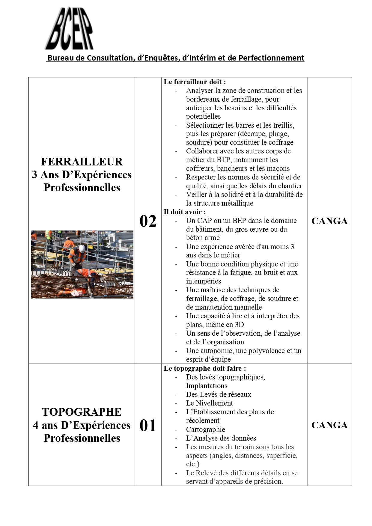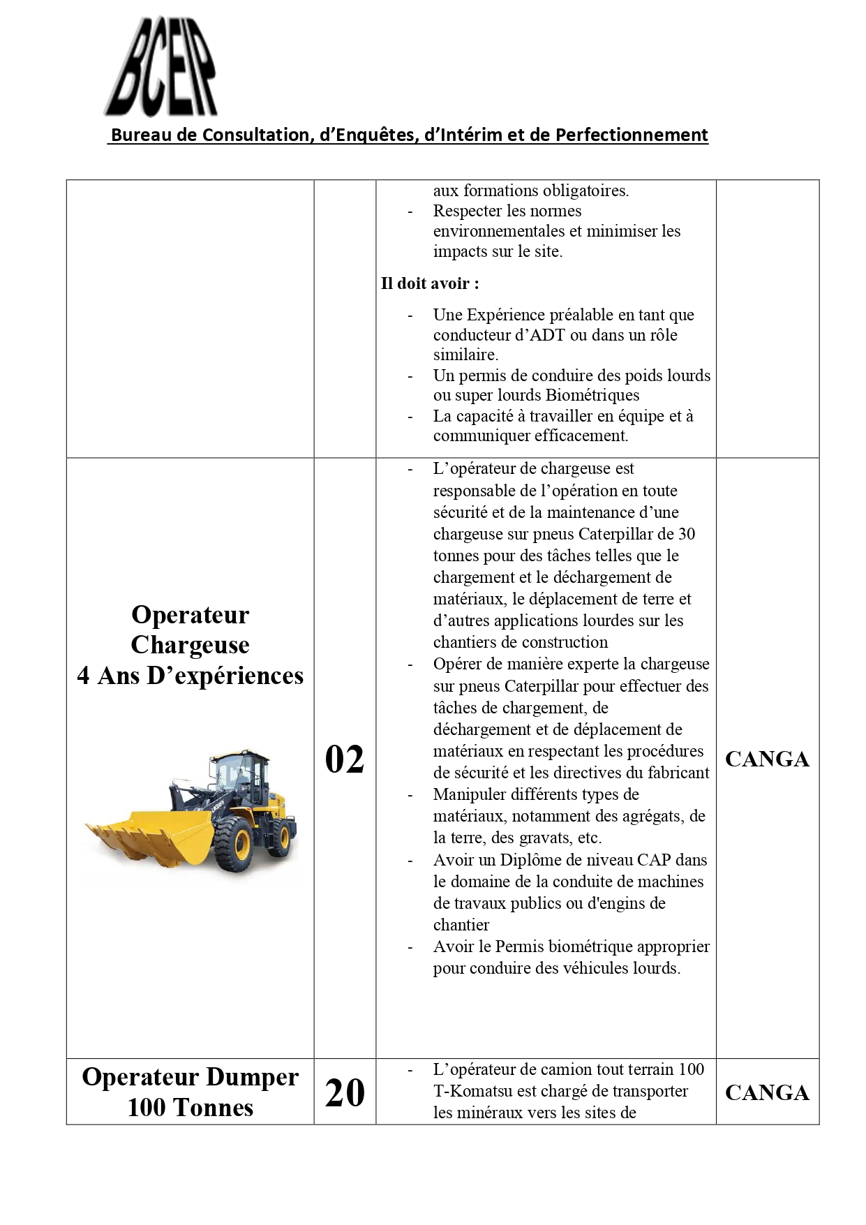 Dans le cadre de l’exécution d’un projet au compte d’une société de la place, le Bureau de Consultation, d’Enquêtes, d’Intérim et de Perfectionnement (BCEIP) offre des opportunités d’emploi aux personnes de nationalité guinéenne pour son bureau à Beyla