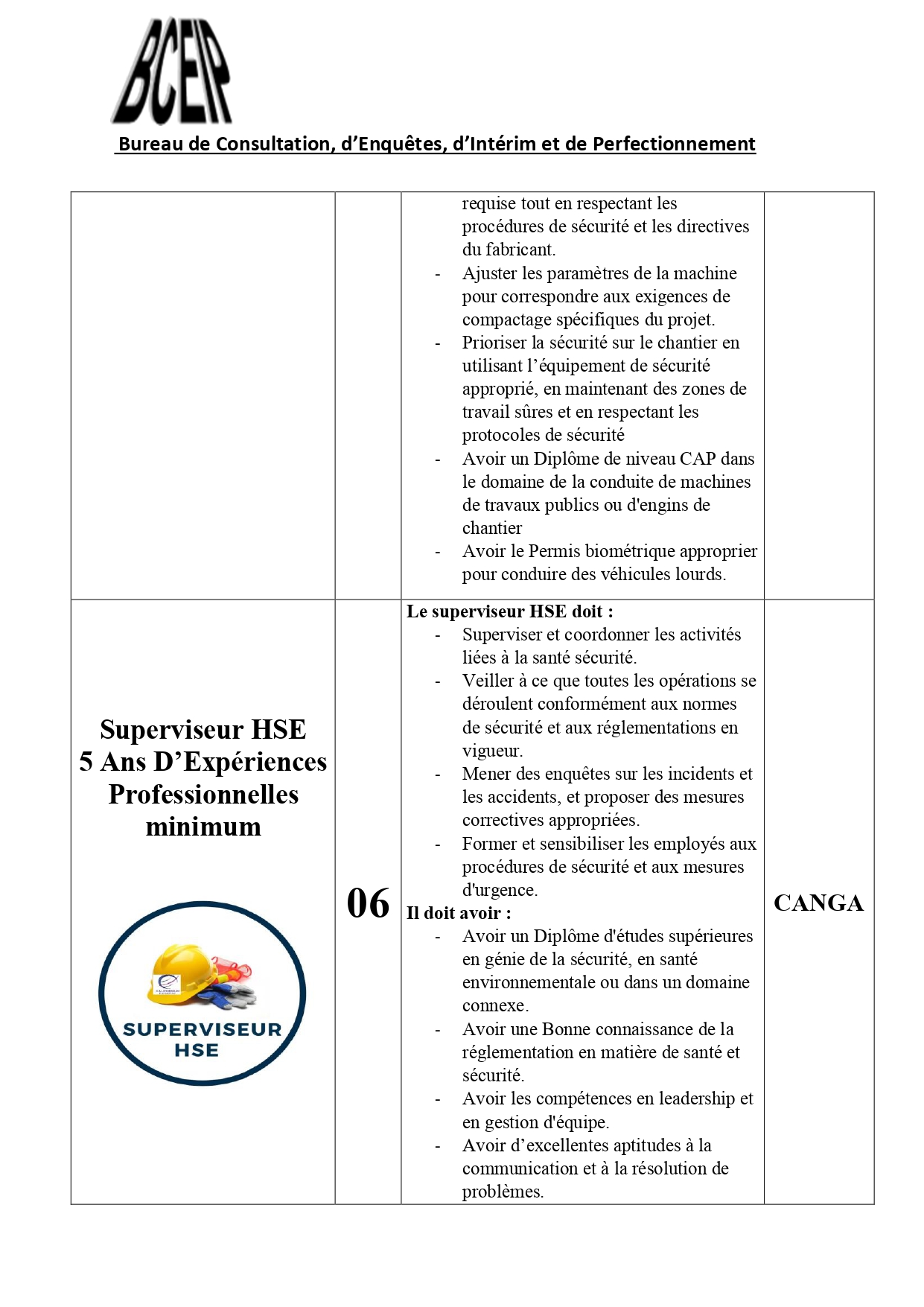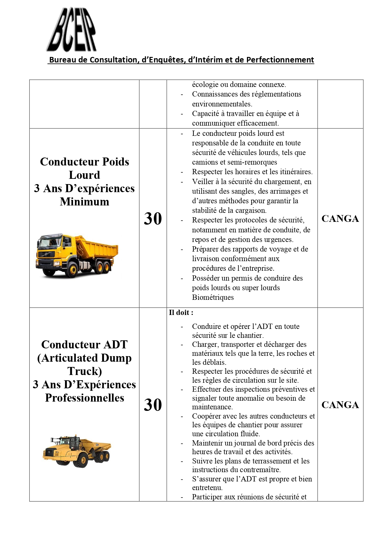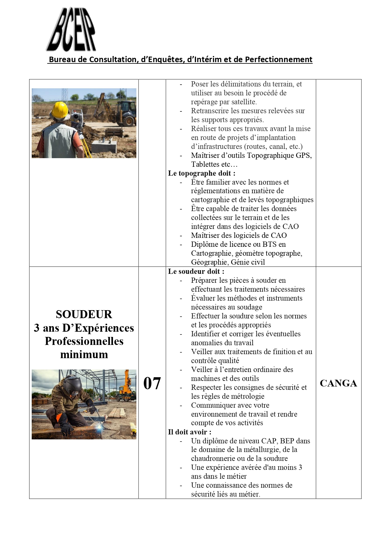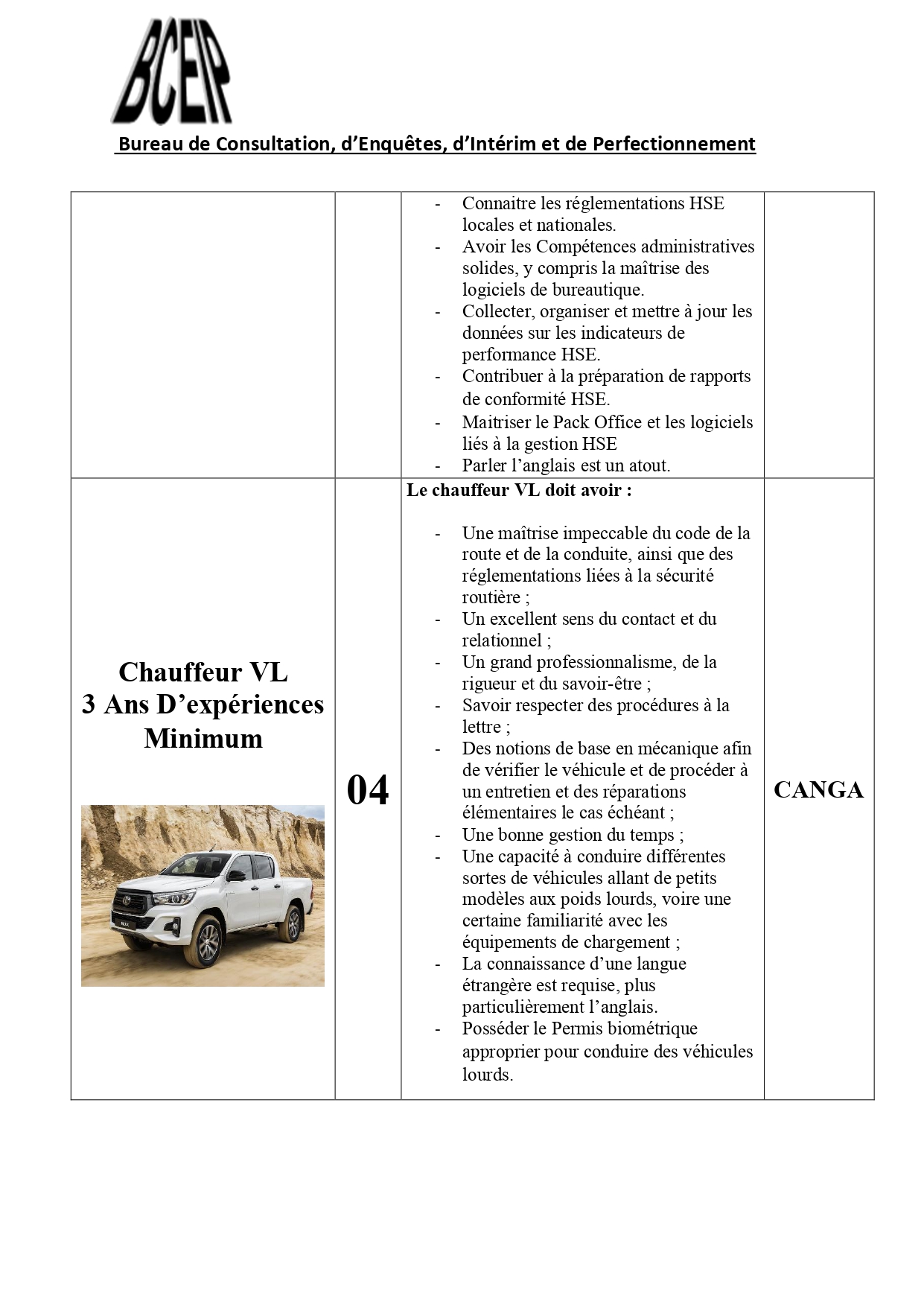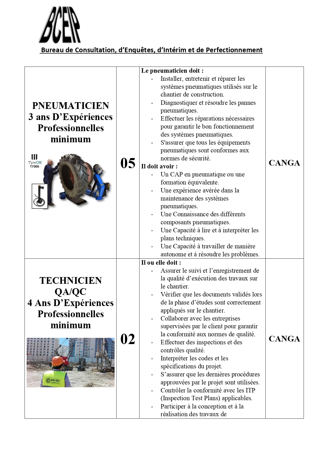 Dans le cadre de l’exécution d’un projet au compte d’une société de la place, le Bureau de Consultation, d’Enquêtes, d’Intérim et de Perfectionnement (BCEIP) offre des opportunités d’emploi aux personnes de nationalité guinéenne pour son bureau à Beyla