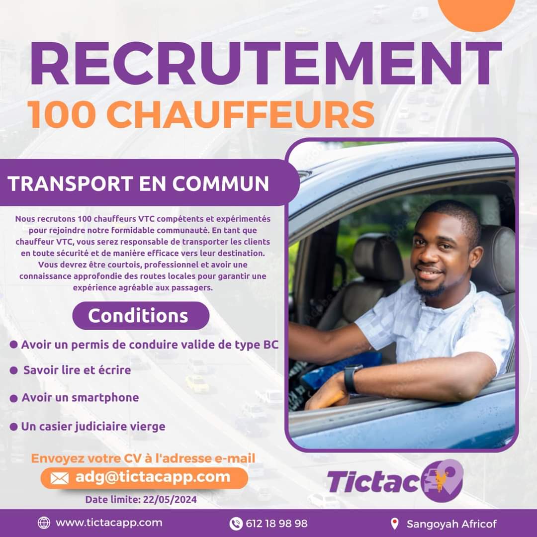 Nous recrutons 100 chauffeurs VTC compétents et expérimentés pour rejoindre notre formidable communauté. En tant que chauffeur VTC, vous serez responsable de transporter les clients en toute sécurité et de manière efficace vers leur destination.