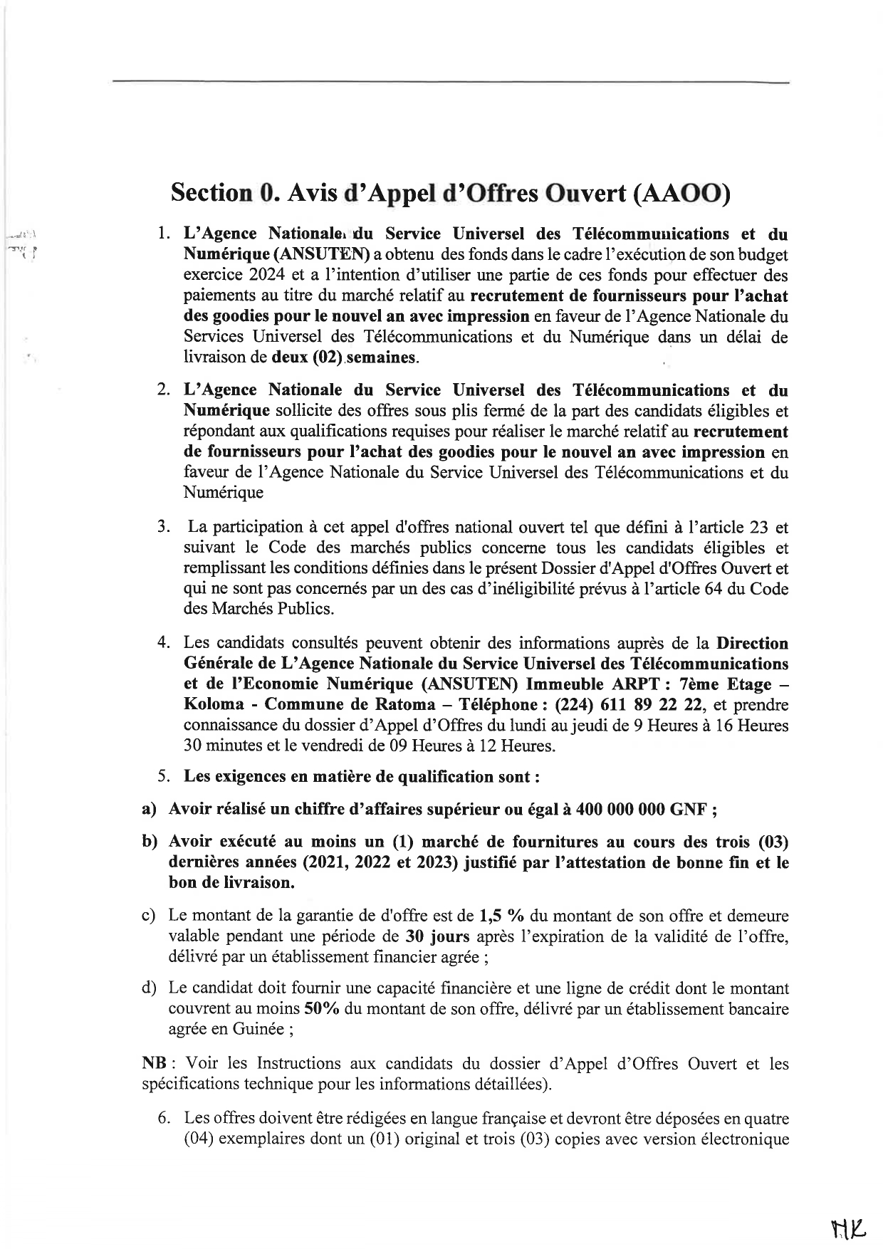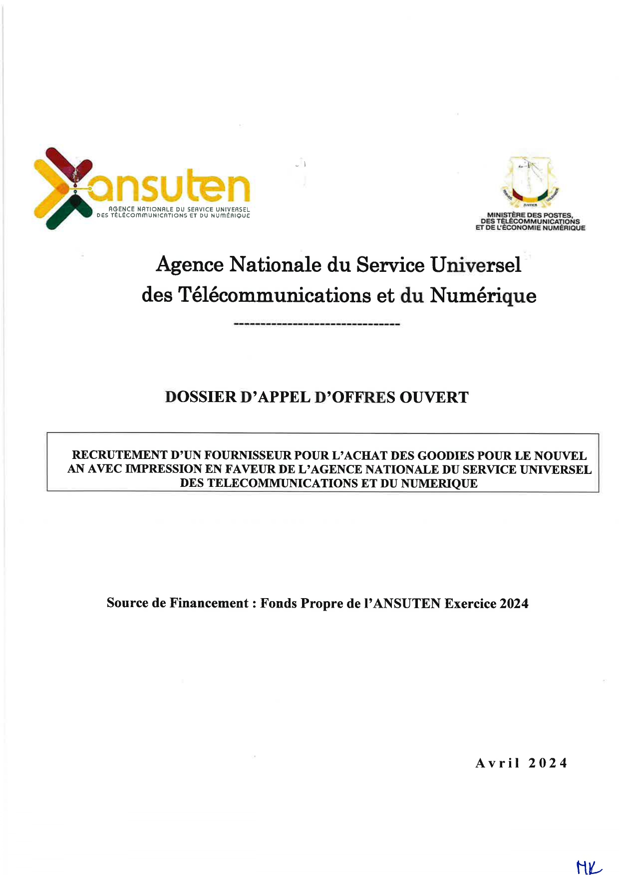 Appel d’offre : ANSUTEN recrute un fournisseur pour l’achat des goodies pour le nouvel an avec impression Appels d'offre By alphaleserum@gmail.com Last updated Juin 12, 2024 Share Share
