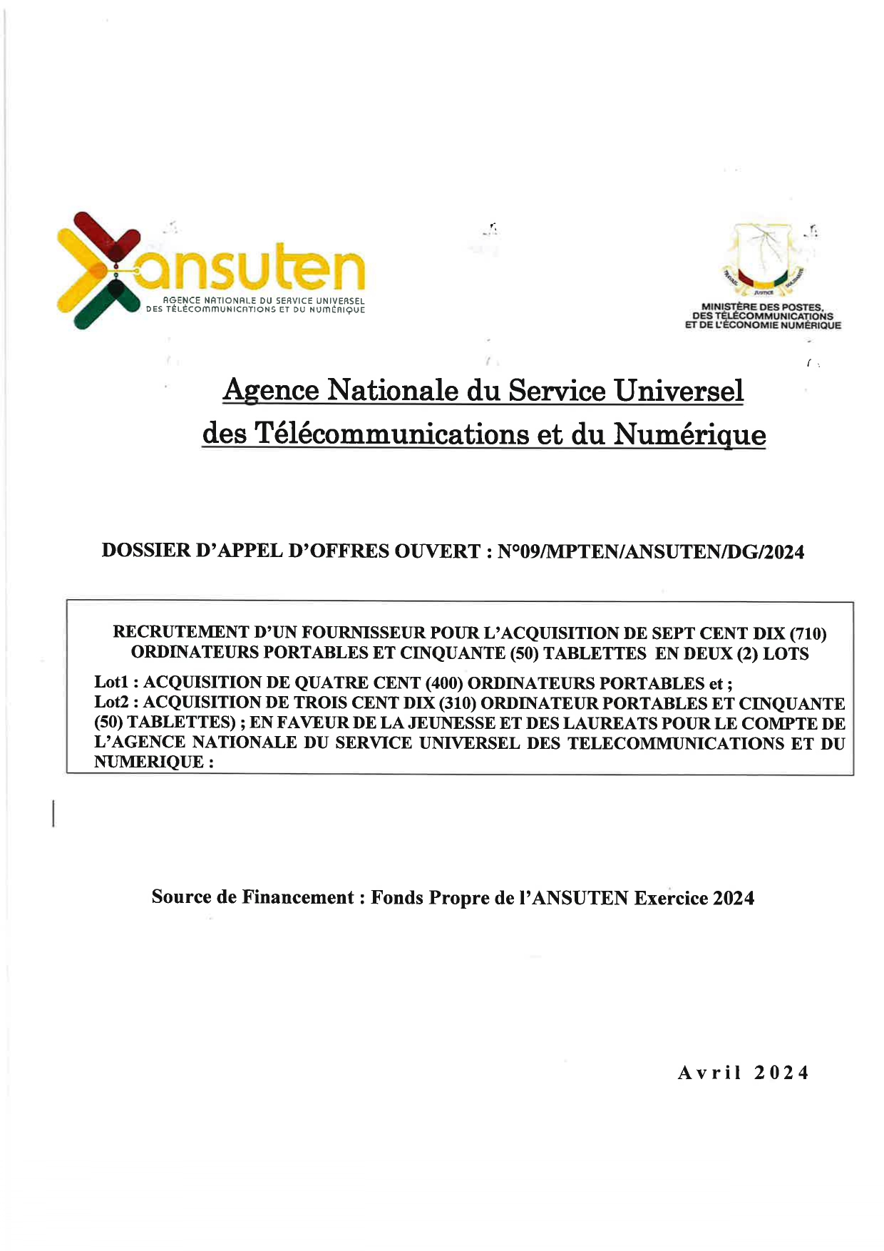 Appel d’offre : l’ANSUTEN recrute un fournisseur pour l’acquisition de 710 ordinateurs portables et 50 tablettes en 2 lots