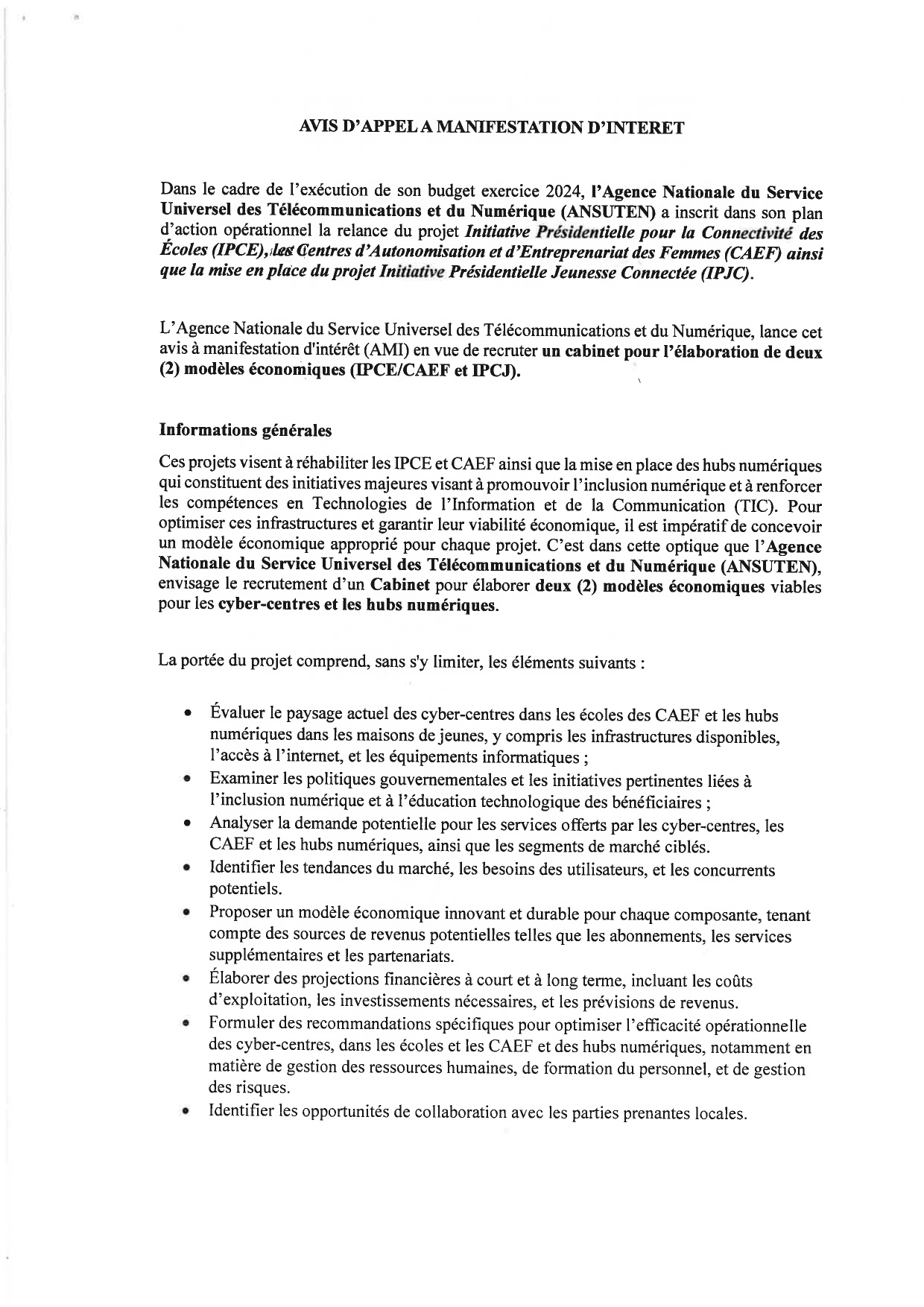 Avis à manifestation d’intérêt : recrutement d’un cabinet pour l’élaboration de deux modèles économiques (IPCE/CAEF et IPJC) Appels d'offre By alphaleserum@gmail.com Last updated Mai 24, 2024 Share Share