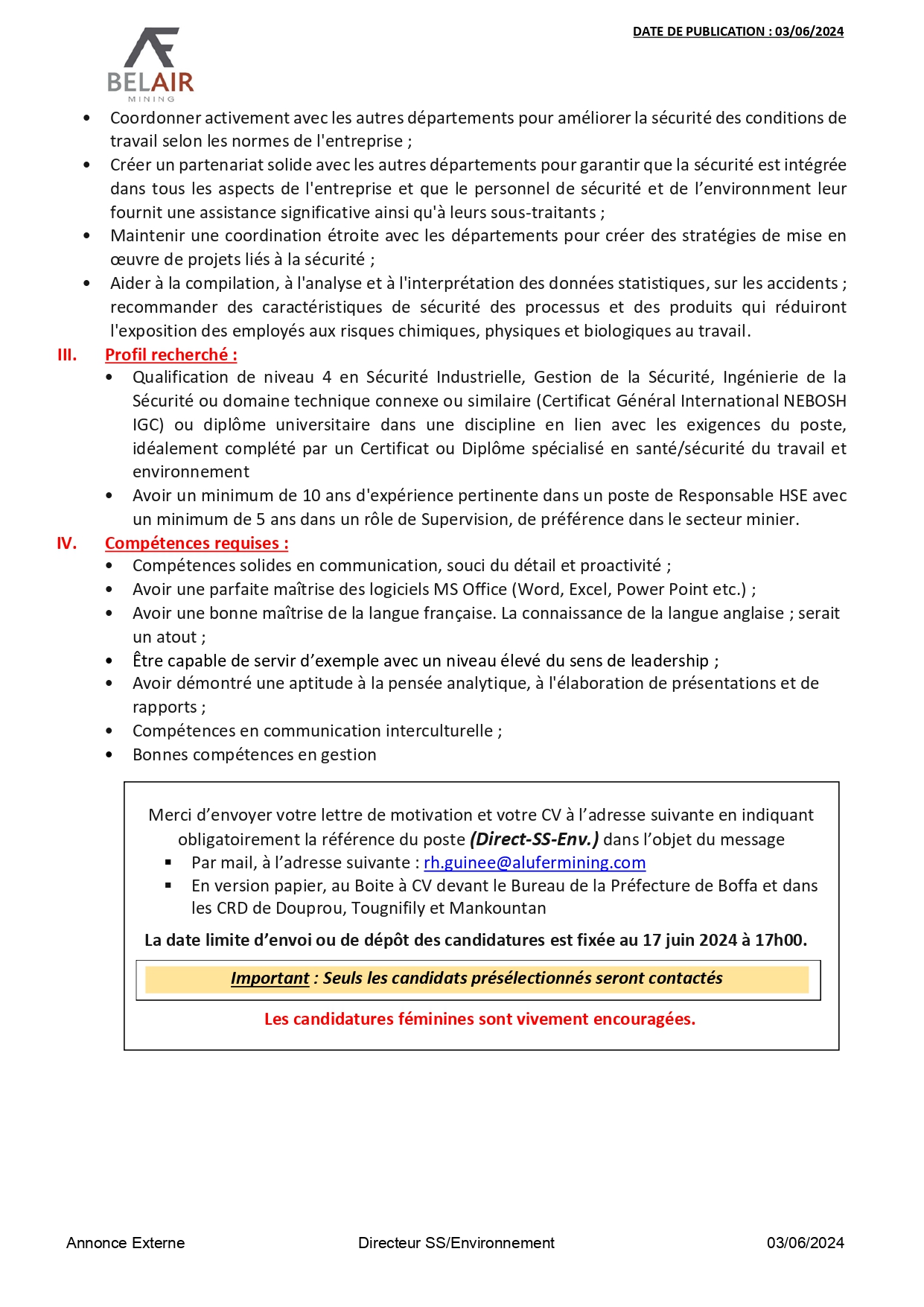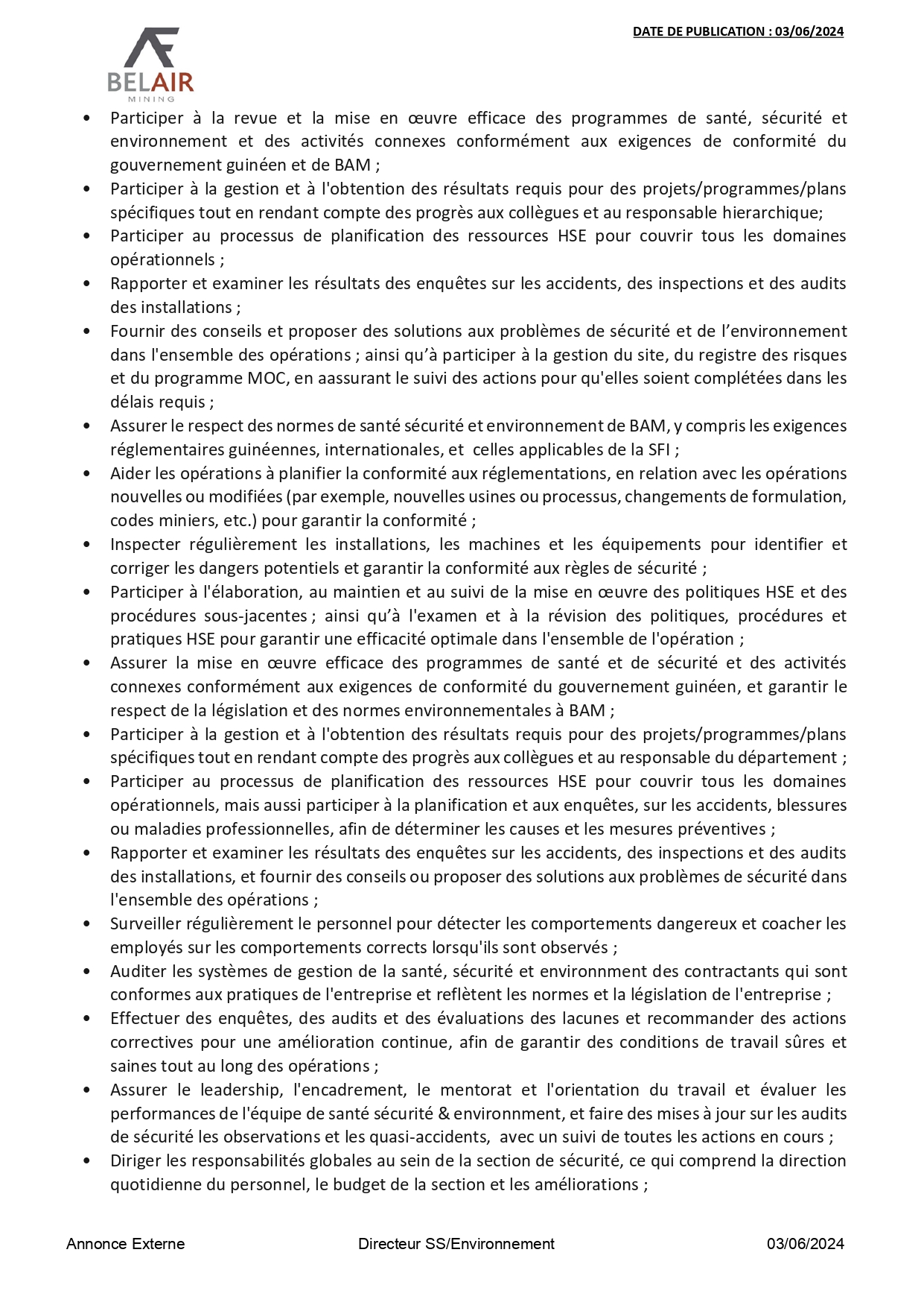 • Offre d’emploi : Bel Air recrute un(e) Directeur Santé Sécurité et Environnement