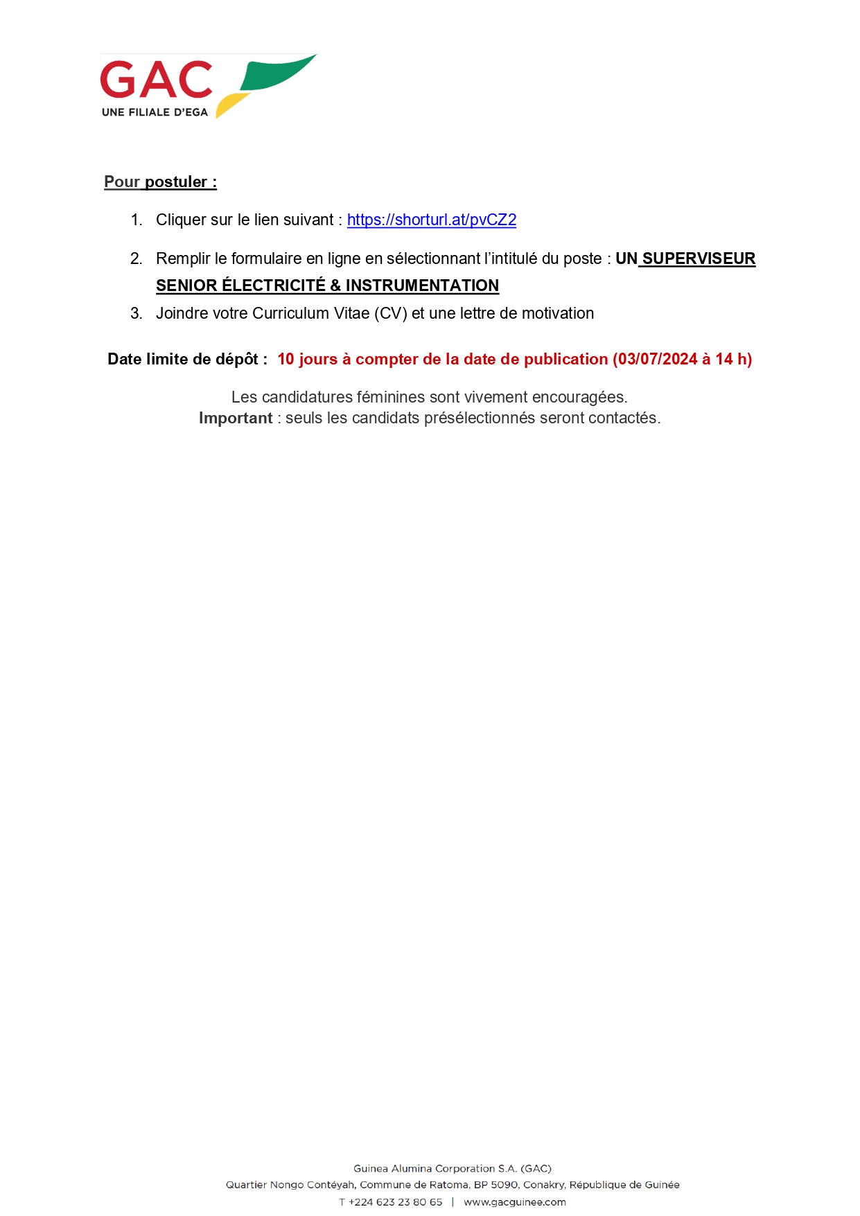 Offre d’emploi : GAC recrute un Superviseur senior Électricité et Instrumentation