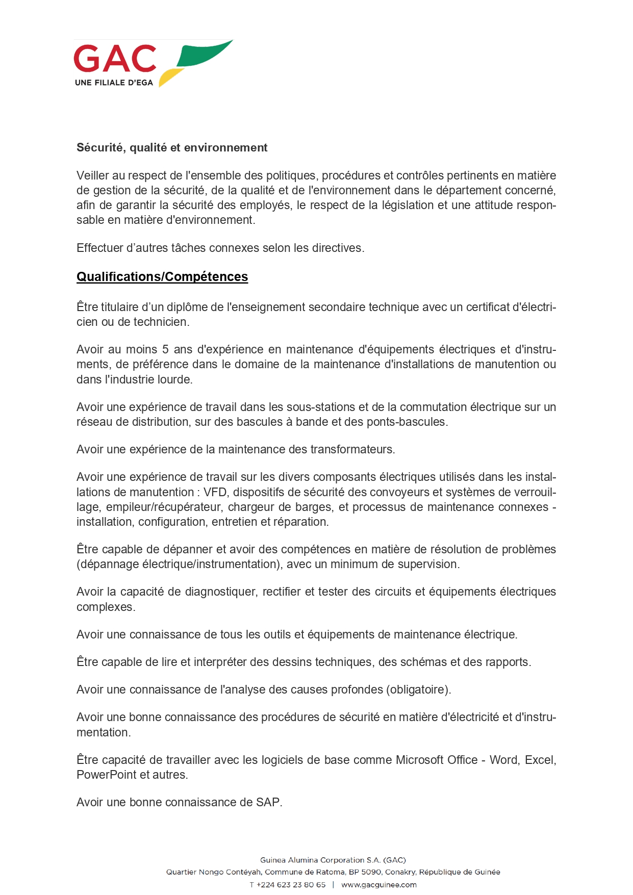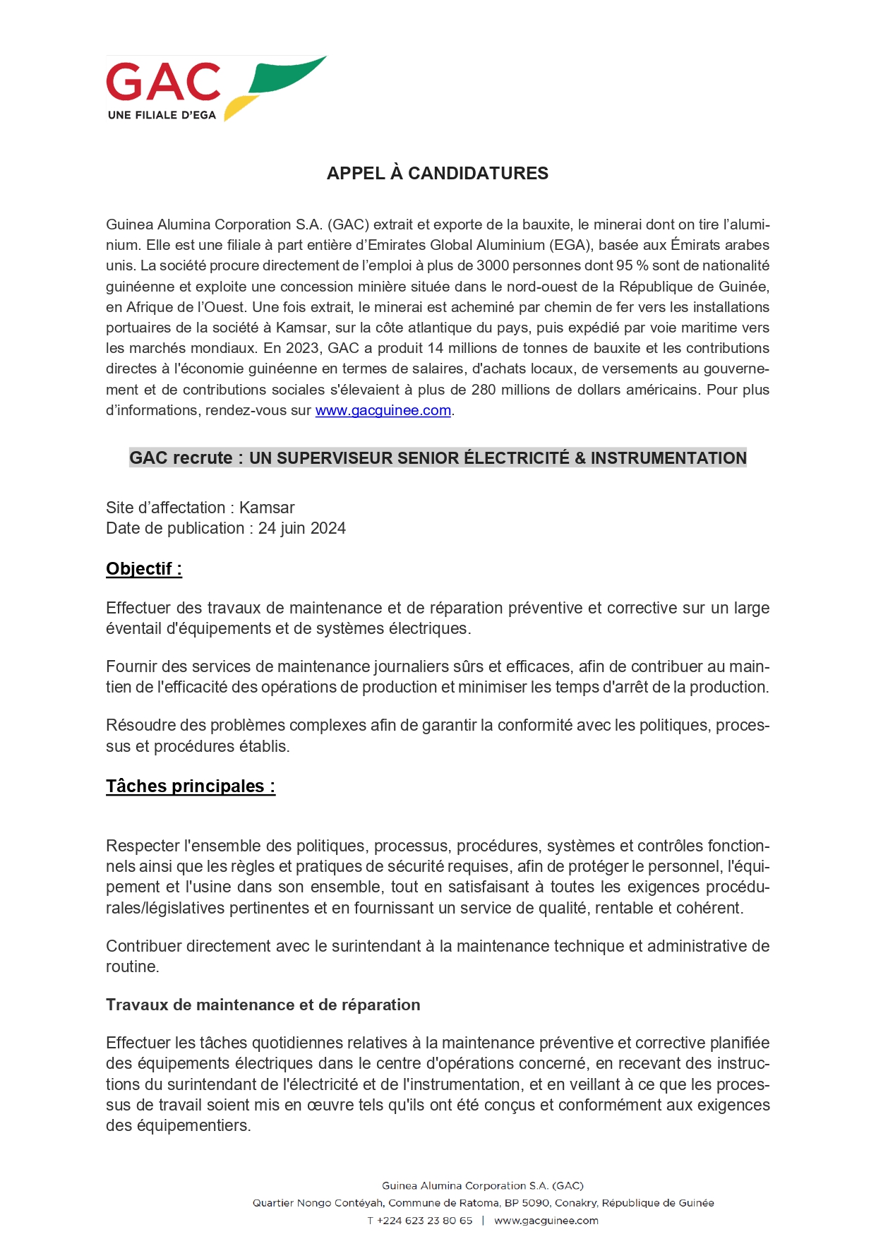 Offre d’emploi : GAC recrute un Superviseur senior Électricité et Instrumentation