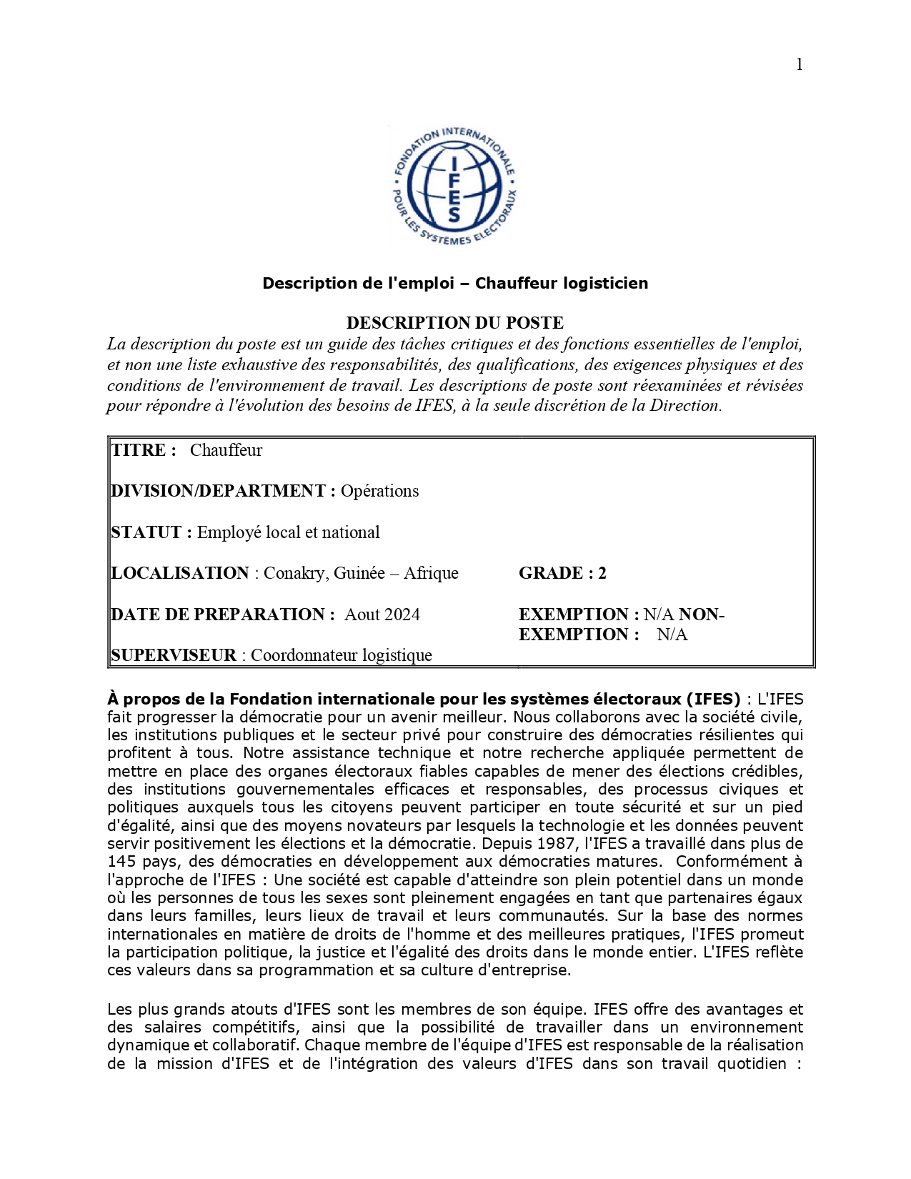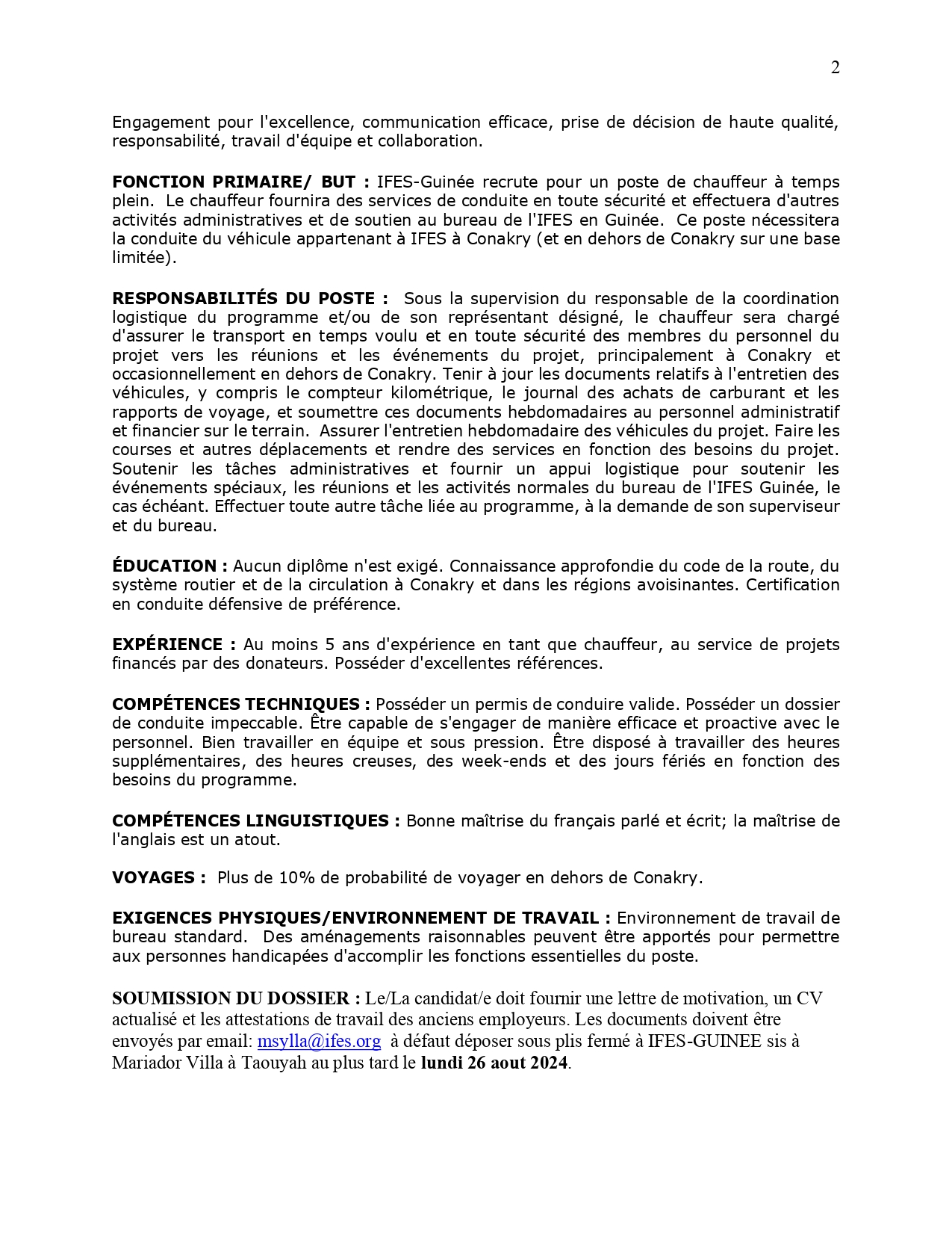 Offre d’emploi : IFES recrute un Chauffeur