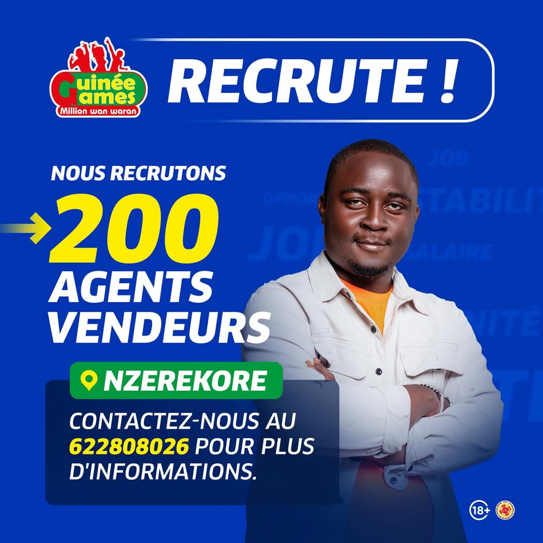 Nous recrutons 𝟐𝟎𝟎 𝐚𝐠𝐞𝐧𝐭𝐬 vendeurs à 𝐍’𝐙érékoré.