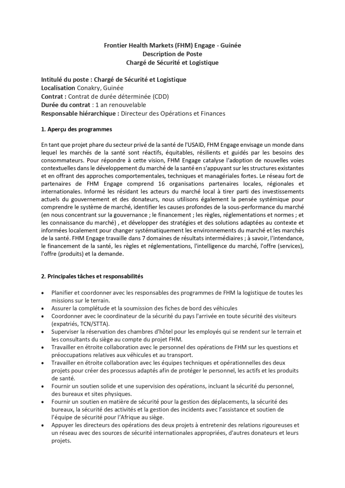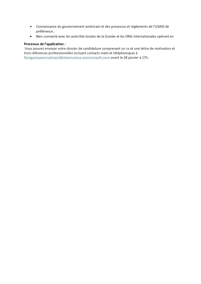 Offre d’emploi : Chemonics recrute un Chargé de Sécurité et Logistique Offres d'emploi By alphaleserum@gmail.com On Jan 24, 2025 Share Share
