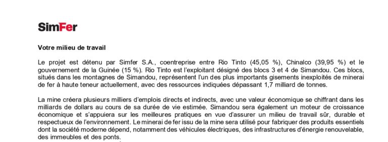 Posez votre candidature dès aujourd’hui : CV + lettre de motivation dans les boîtes aux lettres de Simfer à Beyla ou en cliquant sur ce lien ci-dessous