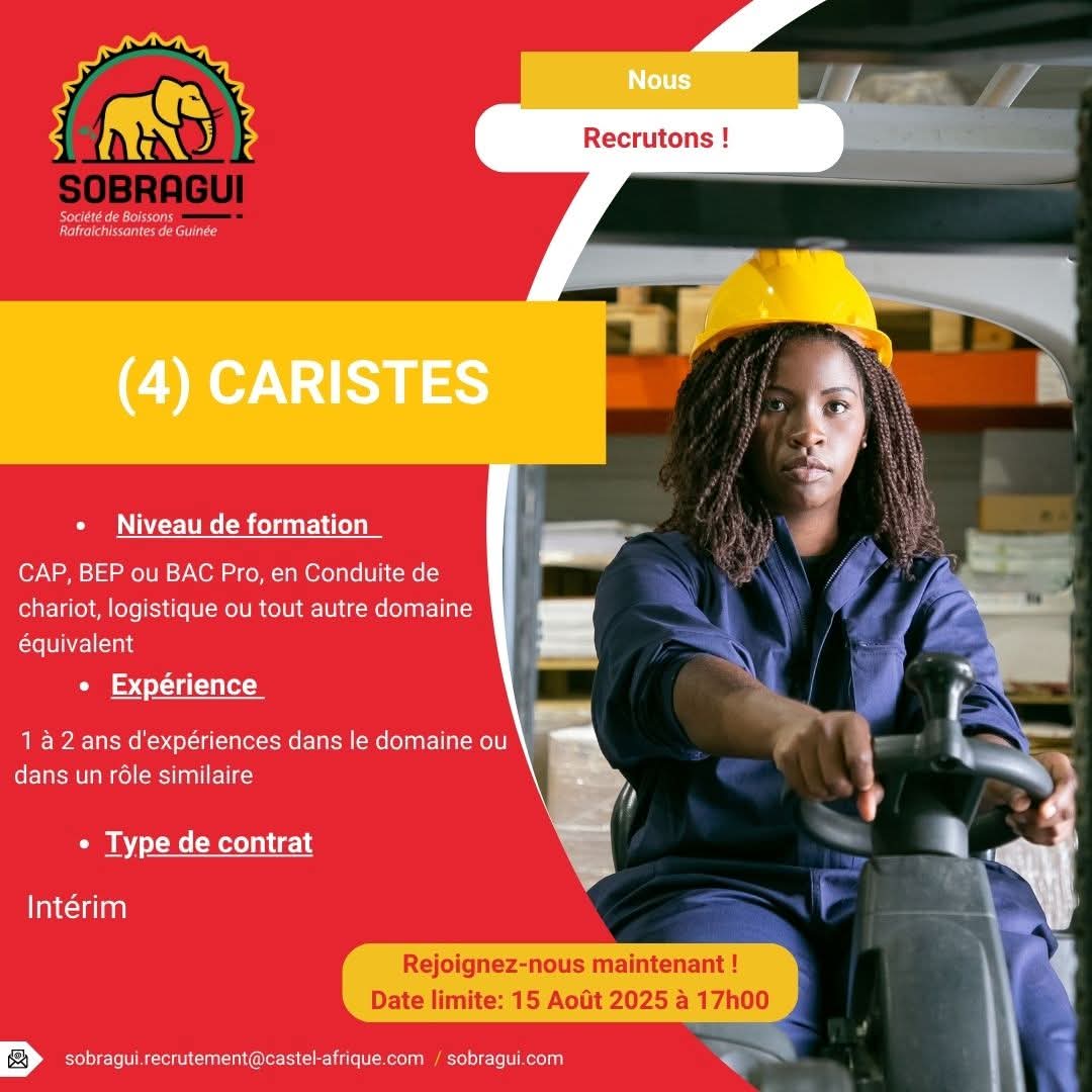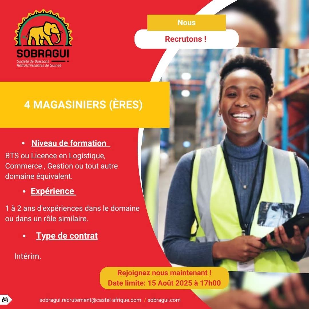 La Société des Brasseries de Guinée (SOBRAGUI S.A), acteur majeur de l’industrie agroalimentaire en Guinée, lance une campagne de recrutement pour renforcer ses équipes dans le cadre de la mise en œuvre de son nouvel organigramme cible.